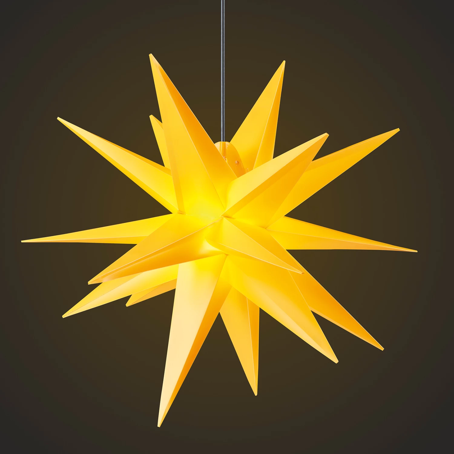 Dieser große Kunststoff-Stern vereint alles, was ein attraktives Deko-Accessoire ausmacht: anspruchsvolles Design, gepaart mit schöner Form- und Farbgebung. Zudem ist der 18-zackige Stern mit der Schutzart IP44 ausgestattet, was ihn gegen Spritzwasser schützt und eine Verwendung im Außenbereich – z. B. an der Außenseite der Fenster sowie auf dem Balkon oder der Terrasse – unkompliziert macht. Aufgrund des Durchmessers von 60 cm ist diese schöne, vorweihnachtliche Dekoration nicht zu übersehen.
