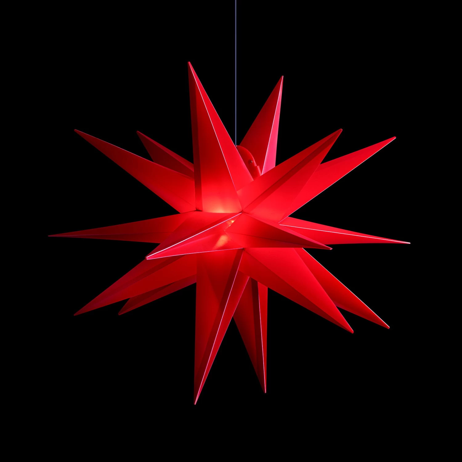 Dieser große Kunststoff-Stern vereint alles, was ein attraktives Deko-Accessoire ausmacht: anspruchsvolles Design, gepaart mit schöner Form- und Farbgebung. Zudem ist der 18-zackige Stern mit der Schutzart IP44 ausgestattet, was ihn gegen Spritzwasser schützt und eine Verwendung im Außenbereich – z. B. an der Außenseite der Fenster sowie auf dem Balkon oder der Terrasse – unkompliziert macht. Aufgrund des Durchmessers von 60 cm ist diese schöne, vorweihnachtliche Dekoration nicht zu übersehen.