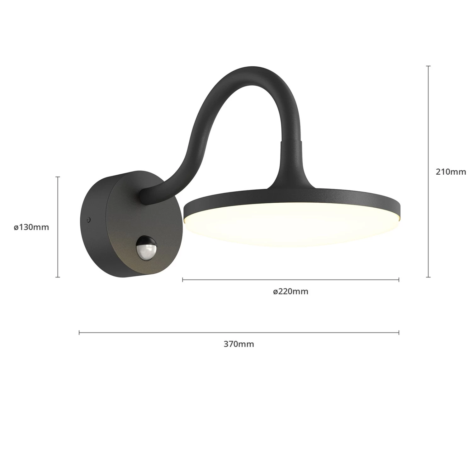 In einem weiten Abstrahlwinkel wird das Licht der warmweißen LEDs der Außenwandleuchte Fineria in die Umgebung abgestrahlt, und zwar immer dann, wenn es benötigt wird, denn die Leuchte ist mit einem integrierten PIR-Bewegungsmelder ausgestattet. Die formschön gestaltete Leuchte aus Aluminium im Farbton Dunkelgrau passt an nahezu jede Fassade und schaltet sich immer dann ein, wenn im Abstand von 6 bis 10 Metern und in einem Erfassungsbereich von 120° eine Bewegung erkannt wird. Die Leuchtdauer ist einstellbar von 5 Sekunden bis 10 Minuten und auch die Ansprechhelligkeit lässt sich einstellen (15 – 2.000 Lux). Die optimale Montagehöhe der Leuchte beträgt 0,5 bis 2,5 Meter.