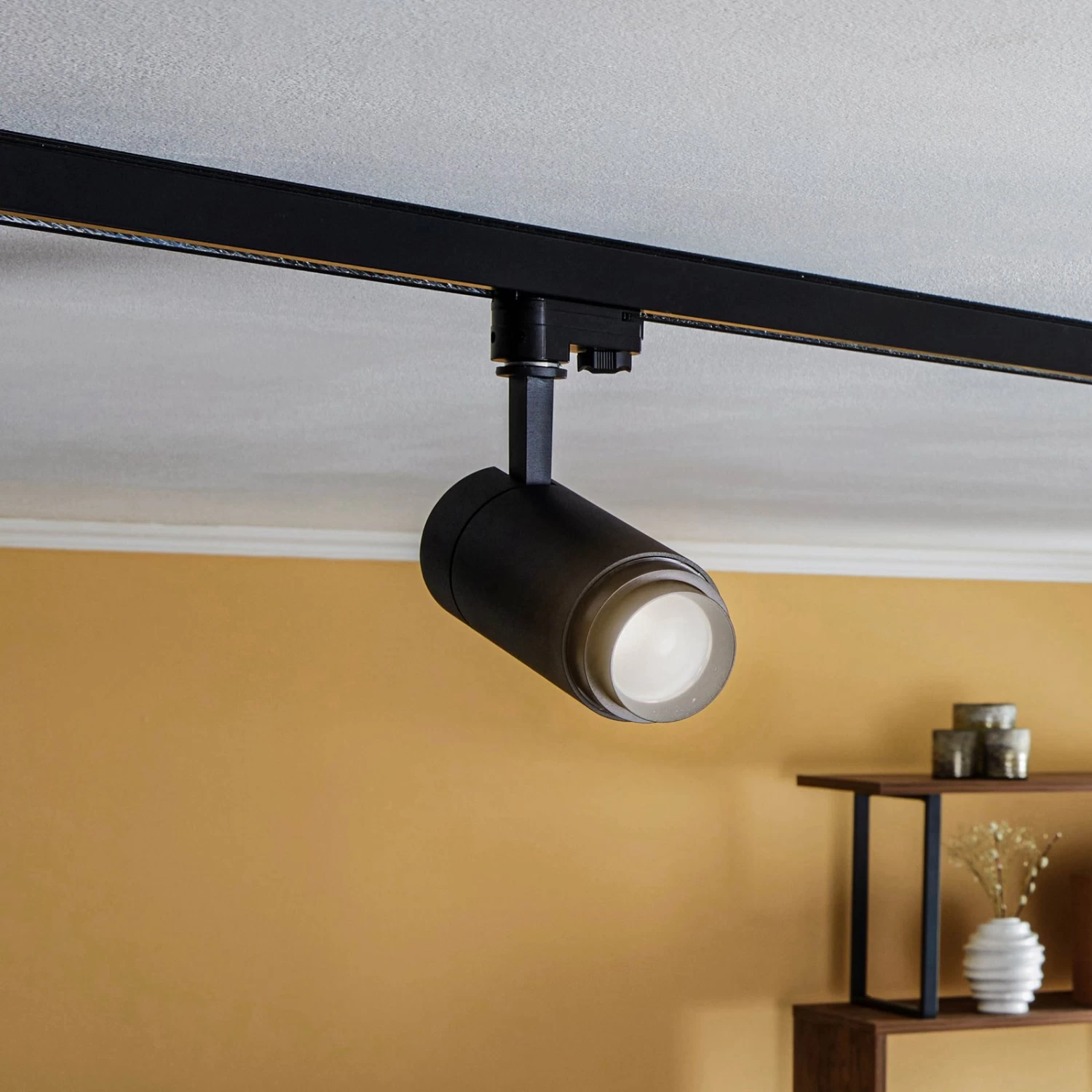 Dieser Schienenstrahler ist kompatibel mit gängigen 3-Phasen-Schienensystemen und kann sowohl privat als auch gewerblich zum Einsatz kommen. Der LED-Schirm in zylindrischer Form hat ein Aluminiumgehäuse in Schwarz und eine innenliegende Linse, deren Lichtabstrahlwinkel verändert werden kann, von 15°, was eher schmal und punktuell ist, um spotförmiges Licht zu erzeugen, bis zu 60°, was einem breiteren Lichtaustritt entspricht, um ein etwas größeres Areal zu beleuchten. Für das korrekte Einstellen eines Winkels befinden sich kleine Markierungen am Strahler und der Strahler eignet sich sehr gut für eine professionelle Ausleuchtung von Gewerberäumen, wobei mit den variablen Einstellmöglichkeiten eine passgenaue Lichtsituation erschaffen werden kann, zumal der Strahler selbst sich auch drehen und schwenken lässt.