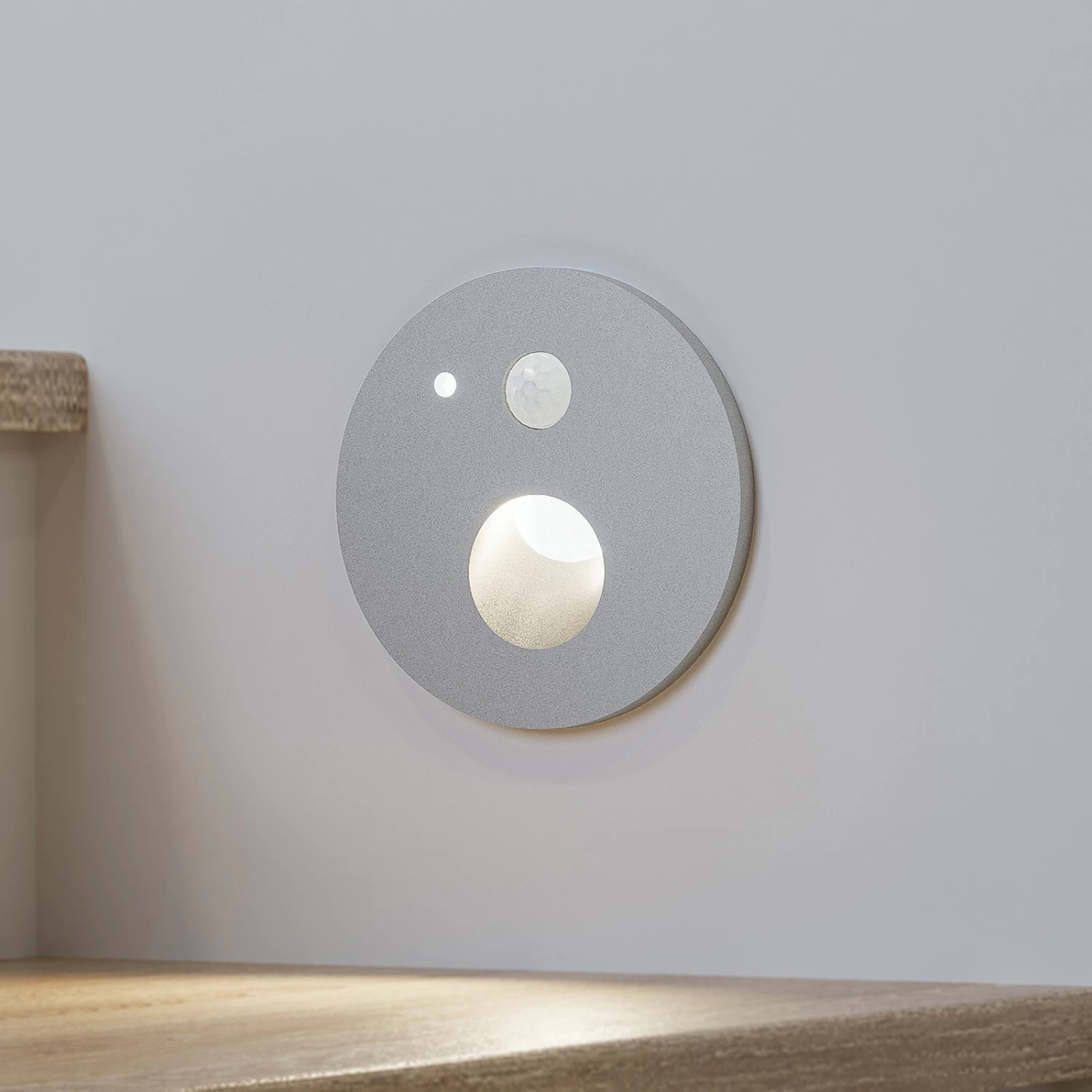Runde LED-Einbauleuchte Neru in Silber mit zweckdienlichem Bewegungssensor