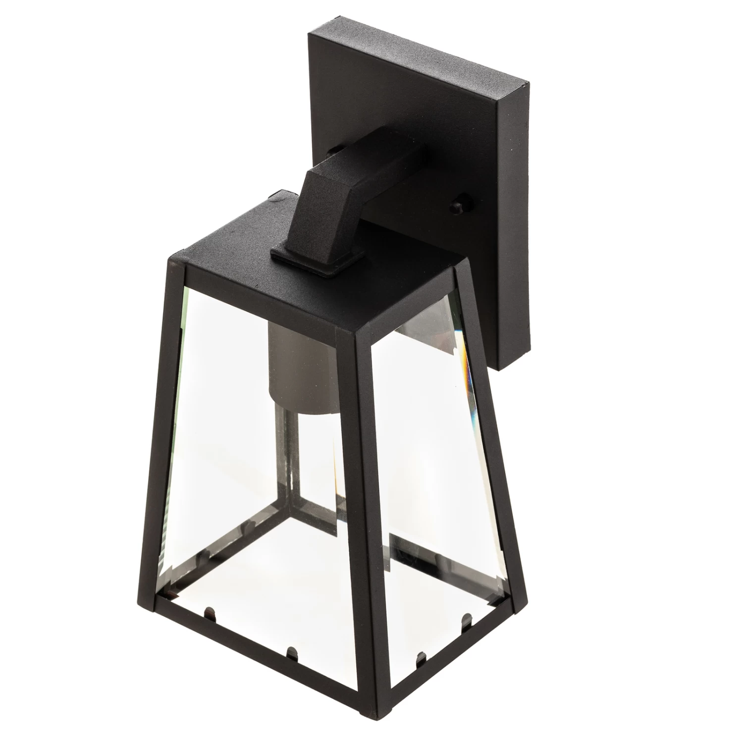 Außenwandleuchte Matslot aus matt-schwarzem Metall und klarem Glas