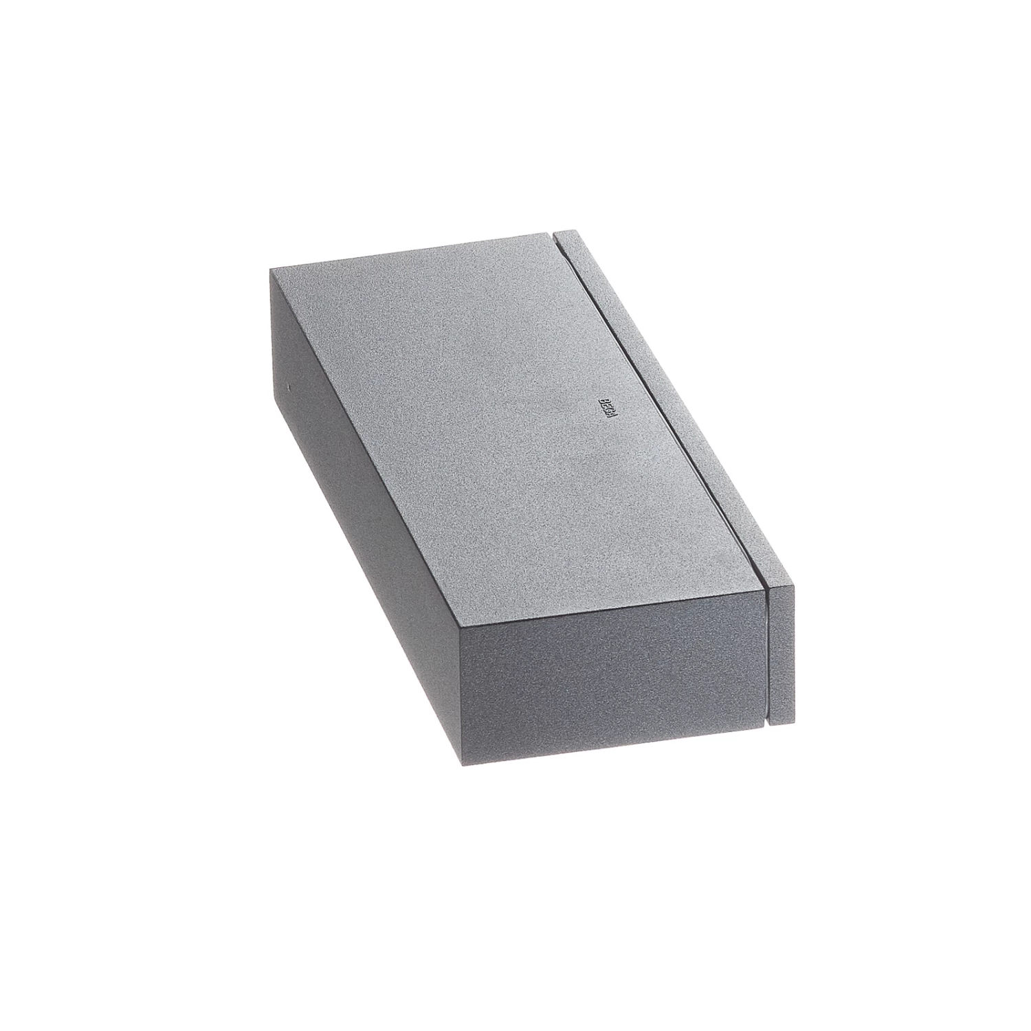 Diese LED-Außenwandleuchte eignet sich ideal zur Beleuchtung von Eingangsbereichen und Laufwegen entlang der Fassade eines Wohnhauses, öffentlichen oder gewerblich genutzten Gebäudes. Sie verfügt über ein abgeblendetes, nach unten gerichtetes Licht, das großflächig und leuchtstark die Wand und die Bodenfläche darunter beleuchtet. Ihr zurückhaltendes, unauffälliges Design macht sie vielseitig einsetzbar. Der quaderförmige Körper besteht aus Aluminiumguss und Edelstahl, die Lichtaustrittsfläche ist mit einem opalen Sicherheitsglas versehen. Die Wandlampe ist gemäß IP65 vor Staub und Spritzwasser geschützt. Sie eignet sie sich zur Durchgangsverdrahtung und kann so zu Mehreren die Außenwand zieren und beleuchten.