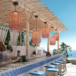 Das Design-Unternehmen Bover, ansässig in Barcelona, verkörpert mit seinen Produkten Made in Spain den mediterranen Lebensstil. Die Hängeleuchte Nans ist für den Außenbereich konzipiert, kann aber auch im Innenbereich verwendet werden. Der zylinderförmige Schirm ist aus einer synthetischen Faser geflochten, wobei verschiedenfarbige Fäden miteinander verwoben sind.