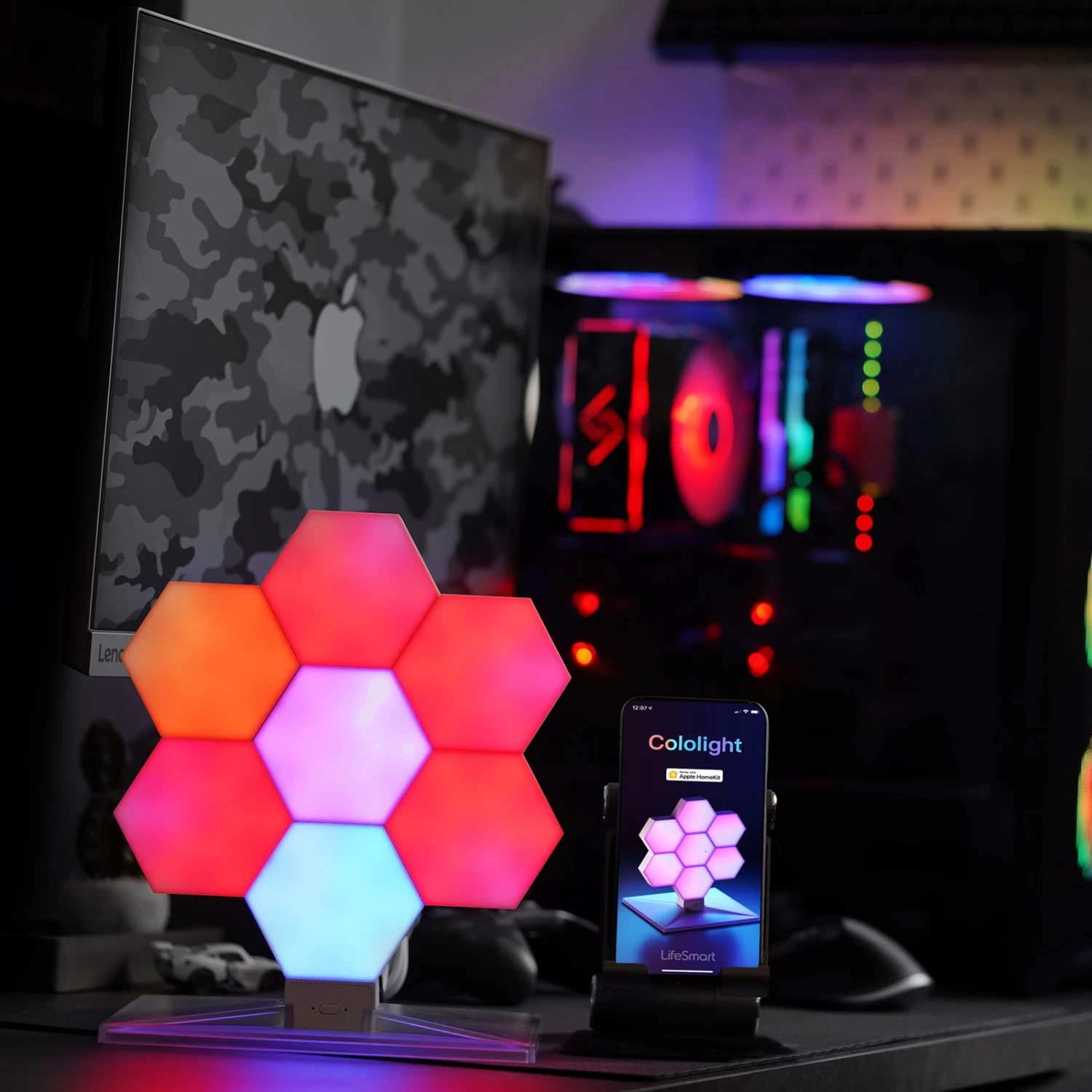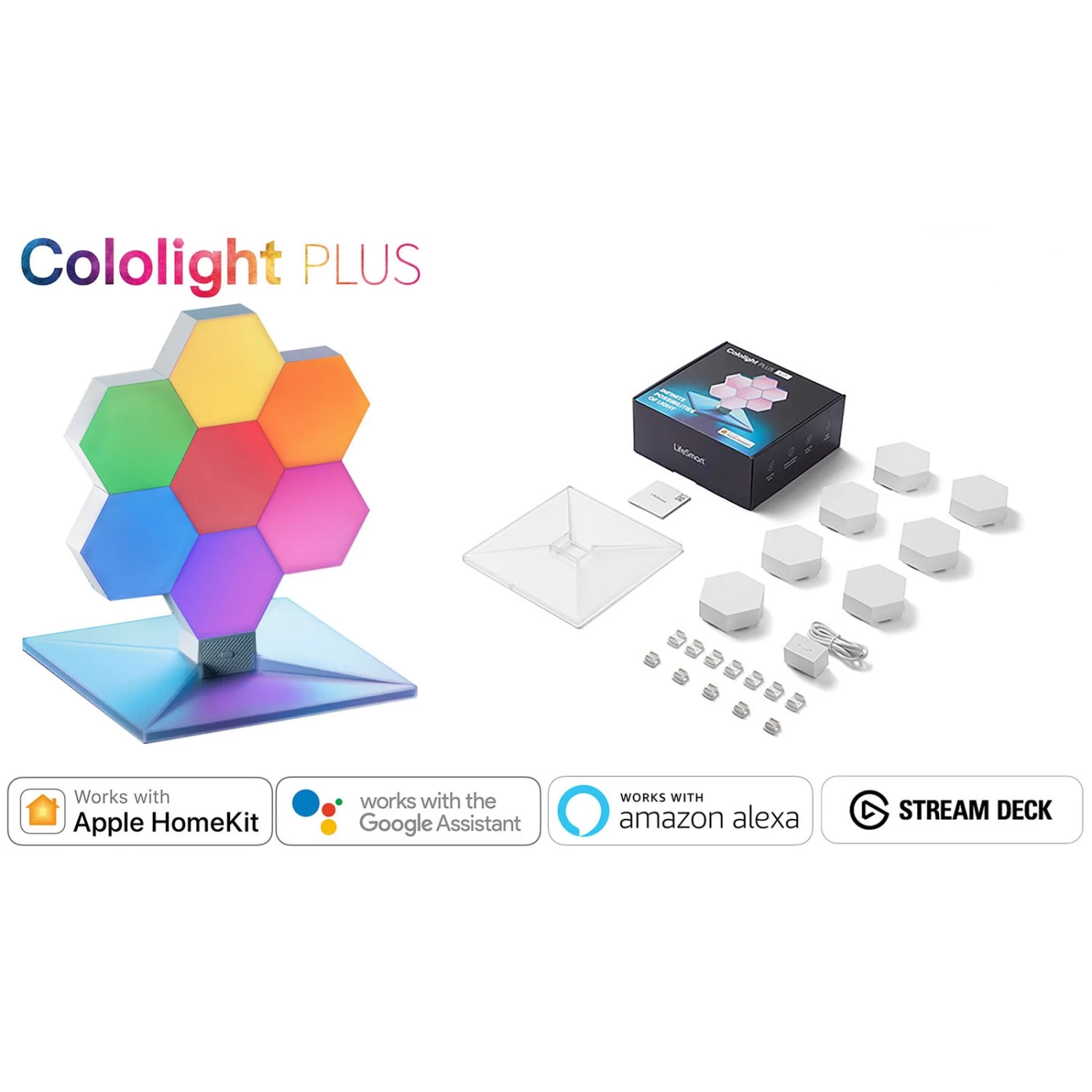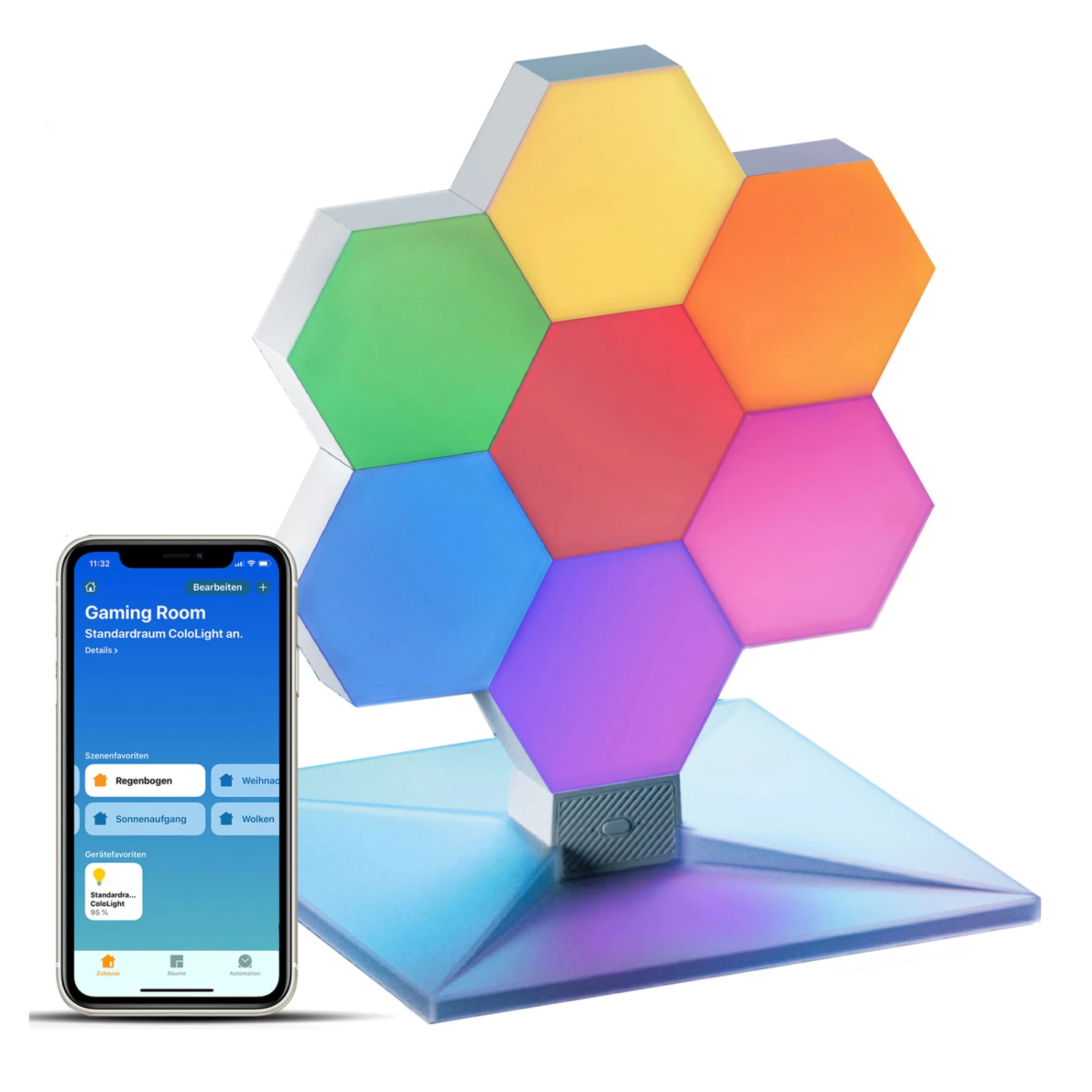Die moderne LED-Leuchte Cololight Plus kann als Tisch- oder Wandleuchte brillieren. Die einzelnen LED-Module sind kachelartig und können individuell angeordnet werden, ob auf dem mitgelieferten Sockel oder auch an der Wand. Mithilfe von einer passenden App oder eines Sprachassistenten können fantastische und einzigartige Lichtkreationen erzeugt werden.