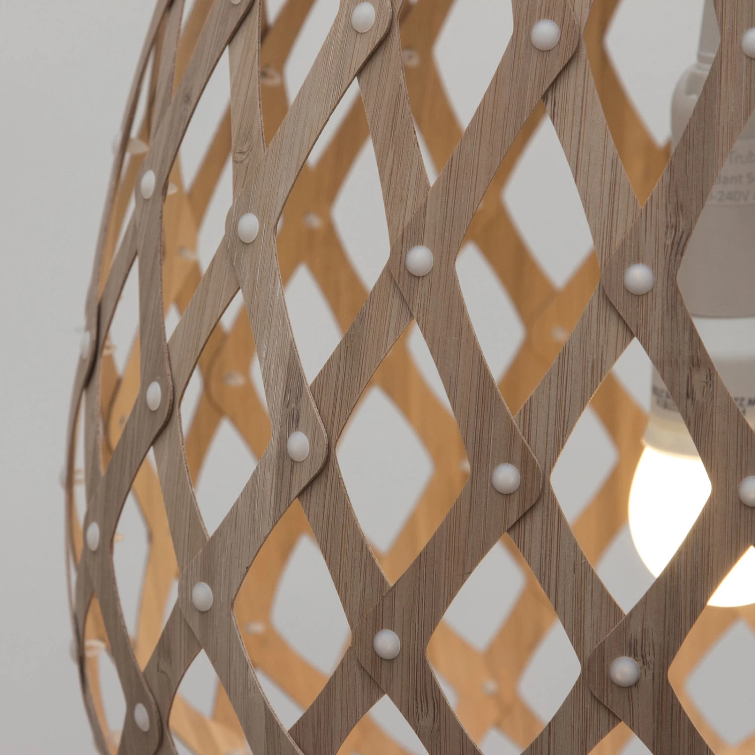 Einst baute der gebürtige Engländer Schiffe, in seiner Wahlheimat Neuseeland ist er zu einem über die Landesgrenzen hinaus bekannten und vielfach ausgezeichneten Designer geworden. Die Inspirationen für seine Werke holt sich Trubridge aus der Natur der neuseeländischen Insellandschaft. Er verwendet für seine Leuchten nur nachhaltig erwirtschaftete Materialien, wie das Bambusfurnier, mit dem der Schirm der Hängelampe Koura gebaut ist. Der große Tropfenschirm setzt sich aus zahlreichen Einzelteilen zusammen. Auffällig ist das radförmige Element an der Schirmöffnung, das bei eingeschalteter Beleuchtung einen tollen Schatteneffekt bewirkt. Die Leuchte wird flach zusammengelegt verschickt, um durch geringeres Volumen im Verhältnis zur zusammengebauten Leuchte dazu beizutragen die Emissionen bei der Versendung zu verringern. Eine ausführliche Montageanleitung für den einfachen Zusammenbau wird mitgeliefert.