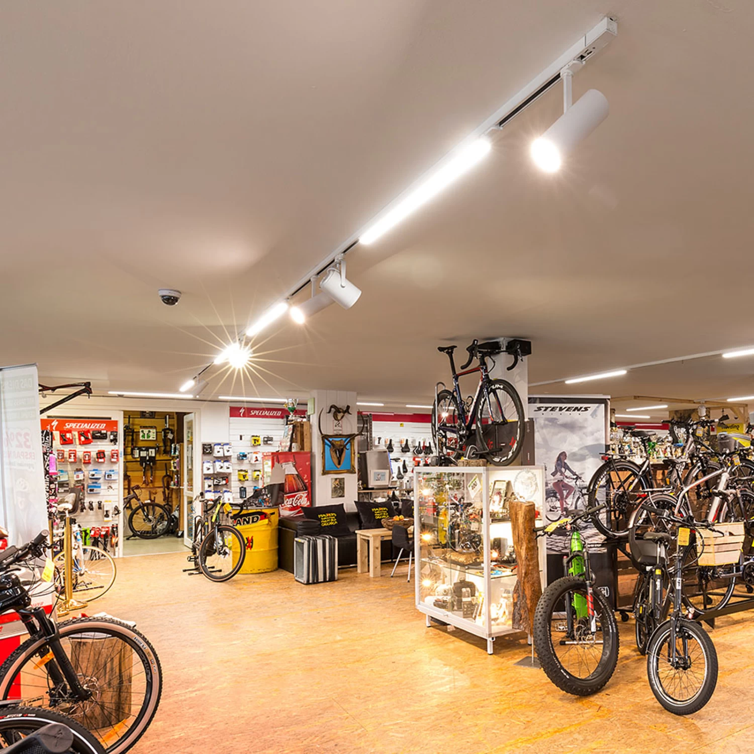 Der moderne LED-Strahler SLIMtrack aus Aluminiumdruckguss ist mit einem zylindrischen Kopf ausgestattet, der über ein passives Kühlsystem verfügt. Der mittelbreite, symmetrische Ausstrahlwinkel von 36° eignet sich einerseits zur Bereichsbeleuchtung; dank der Ausrichtbarkeit, der freien Platzierbarkeit in der 3-Phasen-Schiene und der guten Farbwiedergabe lassen sich auch Verkaufsflächen angemessen ausleuchten.