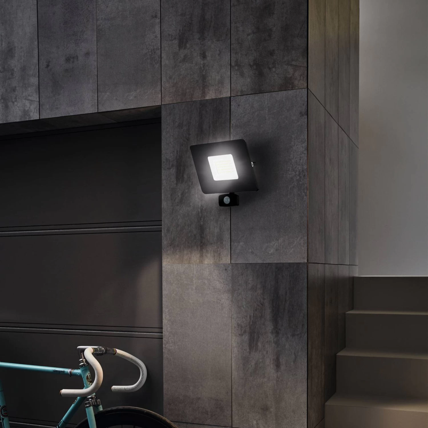 Schwarzer LED-Außenstrahler Faedo 3 mit Bewegungsmelder