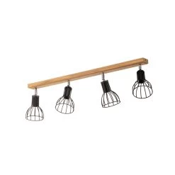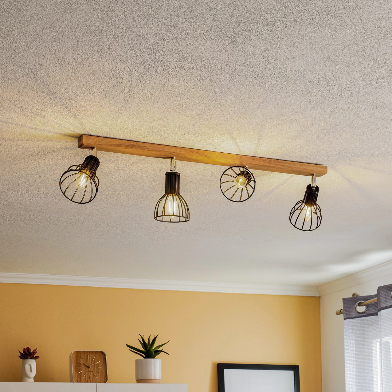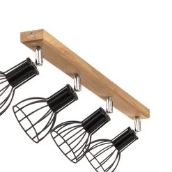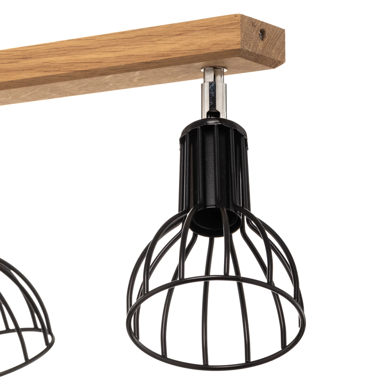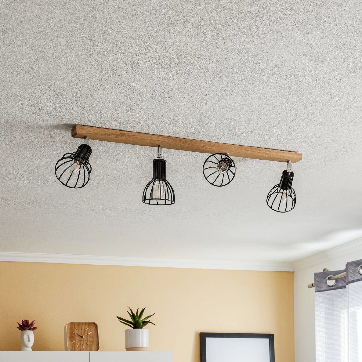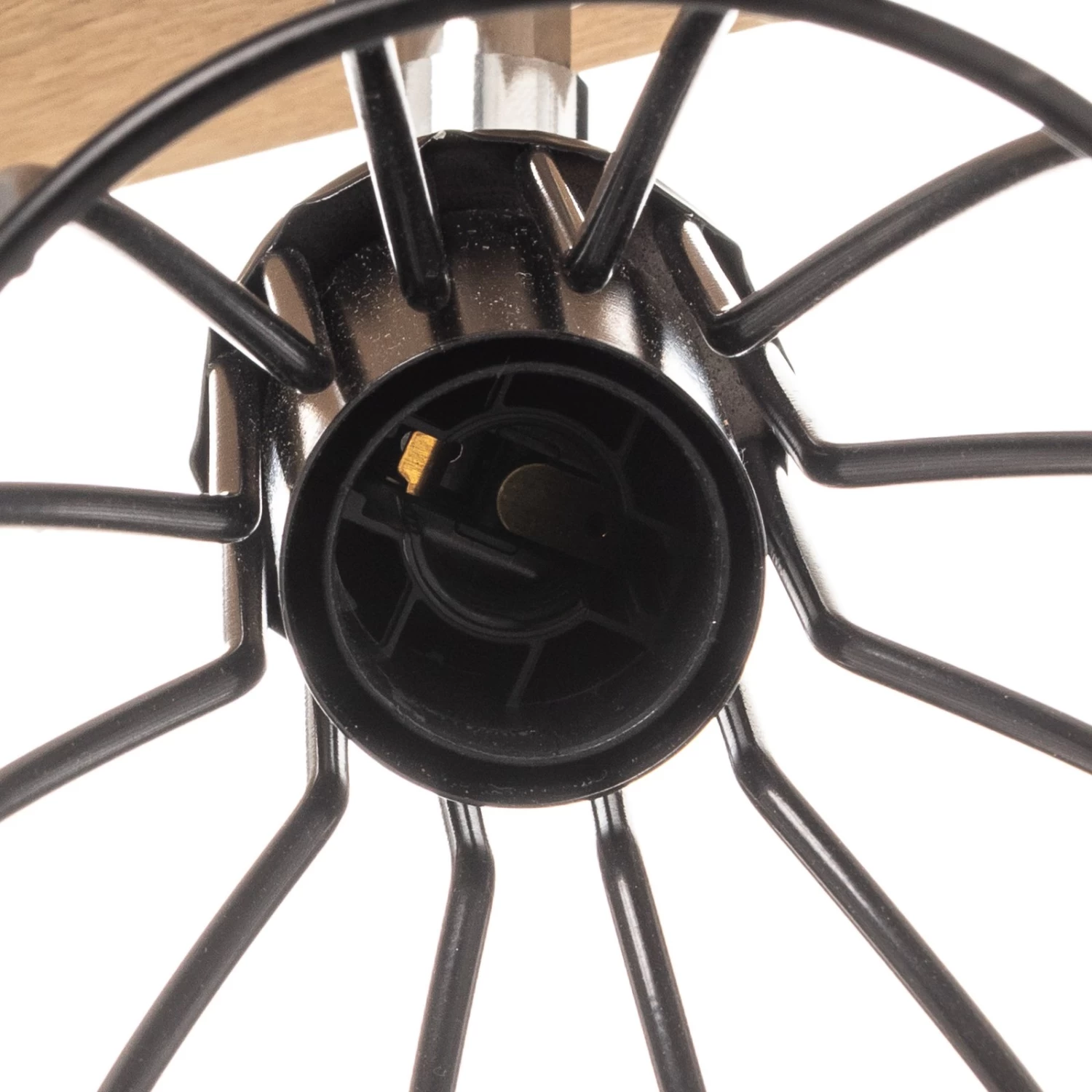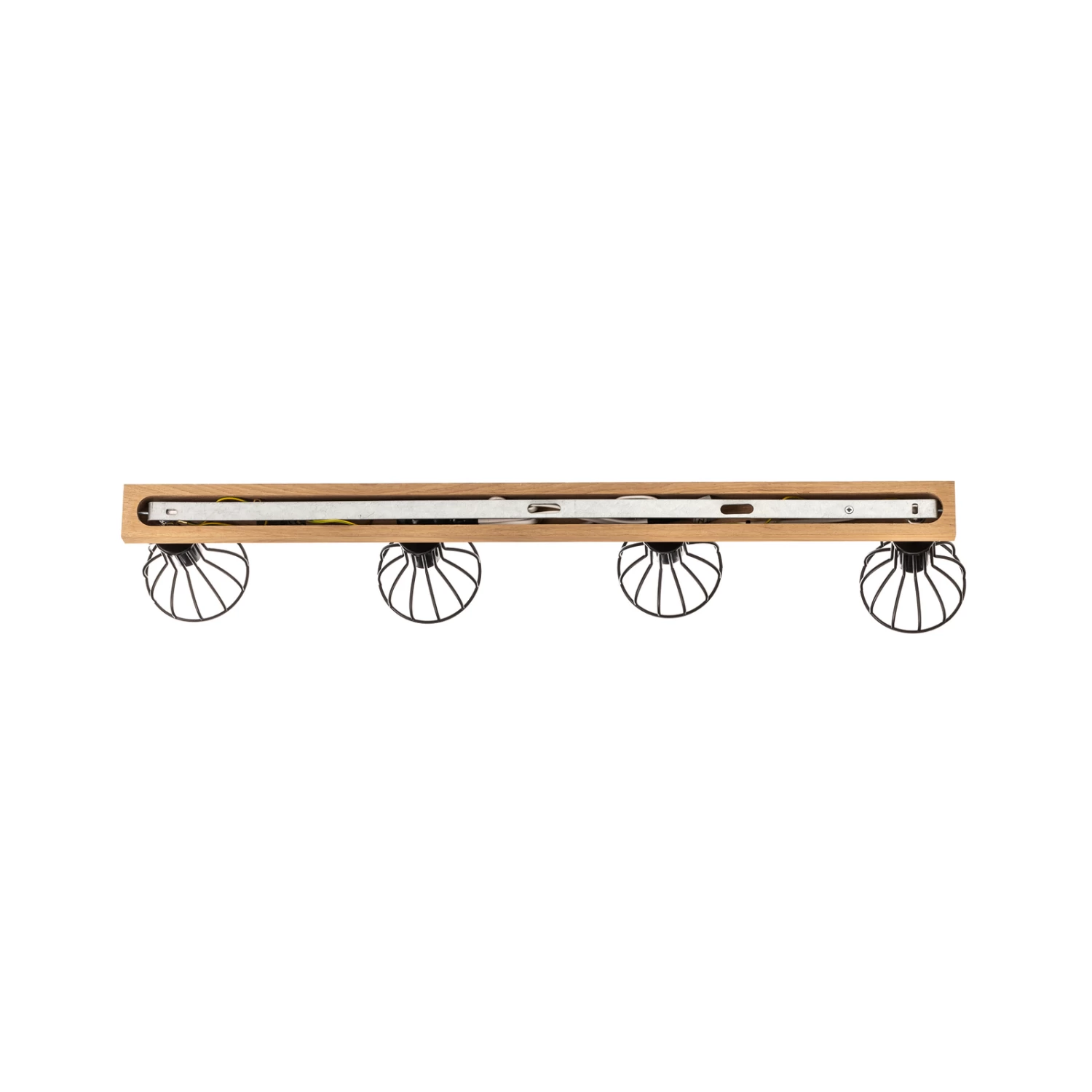 Vierflammige Deckenleuchte Aria mit Baldachin aus Eichenholz und runden Käfigschirmen