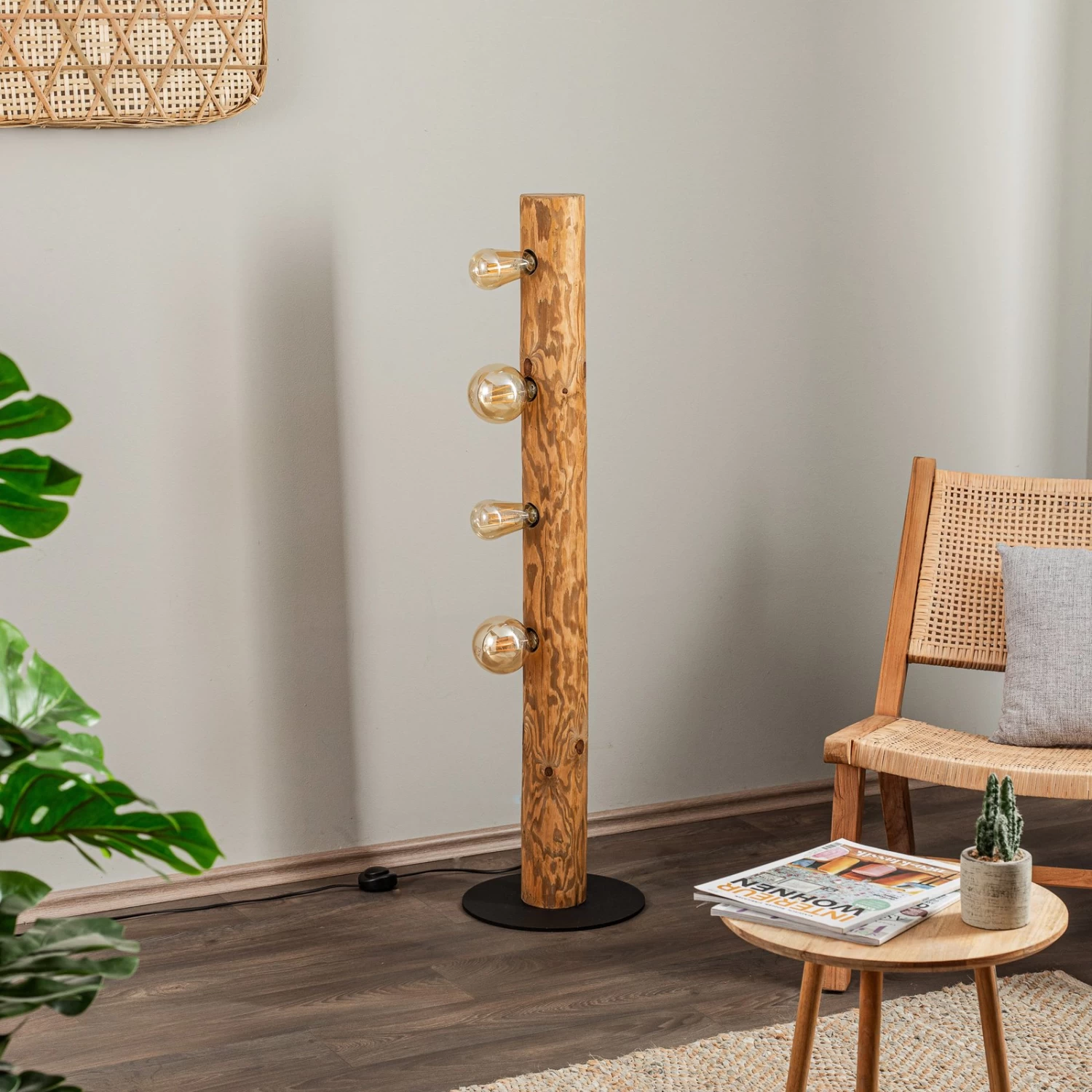 Stehleuchte Beam – Balken aus hellem Kiefernholz mit vier seitlichen Fassungen