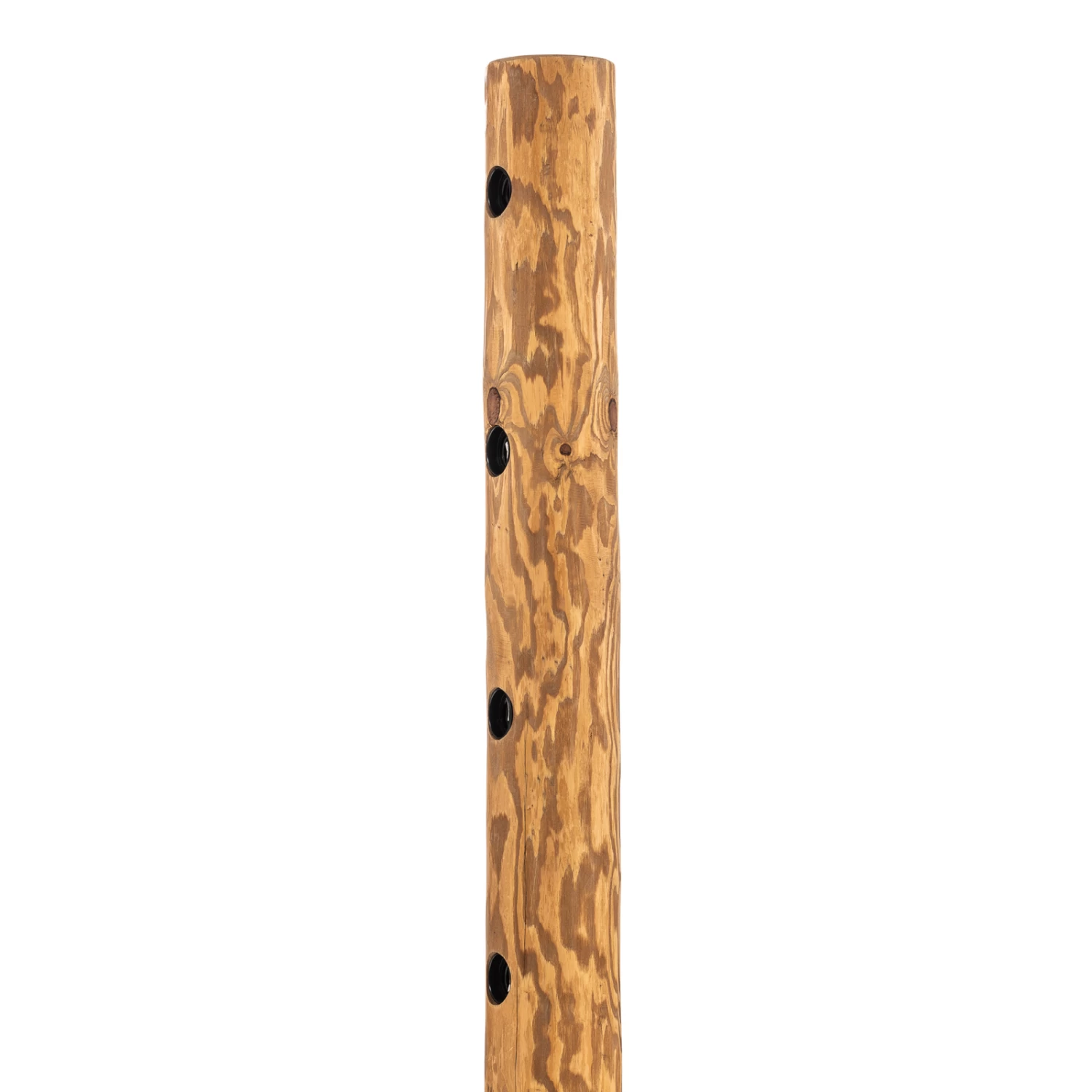 Die Stehleuchte Beam überzeugt mit ihrer Kombination aus schlicht-moderner Formgebung und natürlicher Ausstrahlung. Den Korpus bildet ein hoher, zylindrischer Balken aus geschältem und hell gebeiztem Kiefernholz, der auf einem flachen, runden Standfuß aus schwarz lackiertem Metall angebracht ist. Vier Lampenfassungen sind zu einer Seite am Balken integriert und können ideal mit dekorativen Filamentlampen bestückt werden.