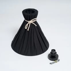 Lola ist mit einem kegelförmigen Lampenschirm ausgestattet. Dieser besteht aus schwarzem Baumwollstoff, der mit einem beigen Seil über der innenliegenden Metallstruktur fixiert ist. Die lässige Gestaltung und das natürliche Material der Deckenleuchte sorgen in vielen Einrichtungskonzepten für eine wohnliche Note.