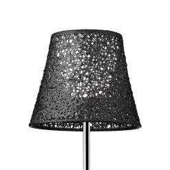 Stimmungsvolle Beleuchtung wünscht man sich an lauen Sommerabenden auch draußen auf der Terrasse – mit der Stehleuchte KTribe F3 ist das kein Problem, denn sie wurde speziell für den Einsatz draußen konzipiert. Der Fuß besteht aus Aluminiumdruckguss, der Stab aus extrudiertem Aluminium. Ein galvanisches Verfahren macht die tragenden Leuchtenteile beständig gegen atmosphärische Einflüsse, die Chrom-Feinbearbeitung sorgt für eine edle Optik. Der Schirm der Leuchte besteht aus farbigem PVC-Rohrnetz und wird innen von einem Innenrahmen aus phosphorchromatierten und polyesterlackierten Aluminiumstangen stabilisiert. Der Schirm wird von einer Abdeckung aus druckgegossenem, phosphorchromatiertem und lackiertem Aluminium abgedeckt. Im Schirm wurde eine E27-Fassung integriert, in die sich von der Halogenlampe bis 205 W über die Glühlampe bis hin zur LED-Lampe alle Arten von Leuchtmitteln einsetzen lassen. Da die Leuchte mit einem Dimmer ausgestattet ist, muss ein dimmbares Leuchtmittel verwendet werden.