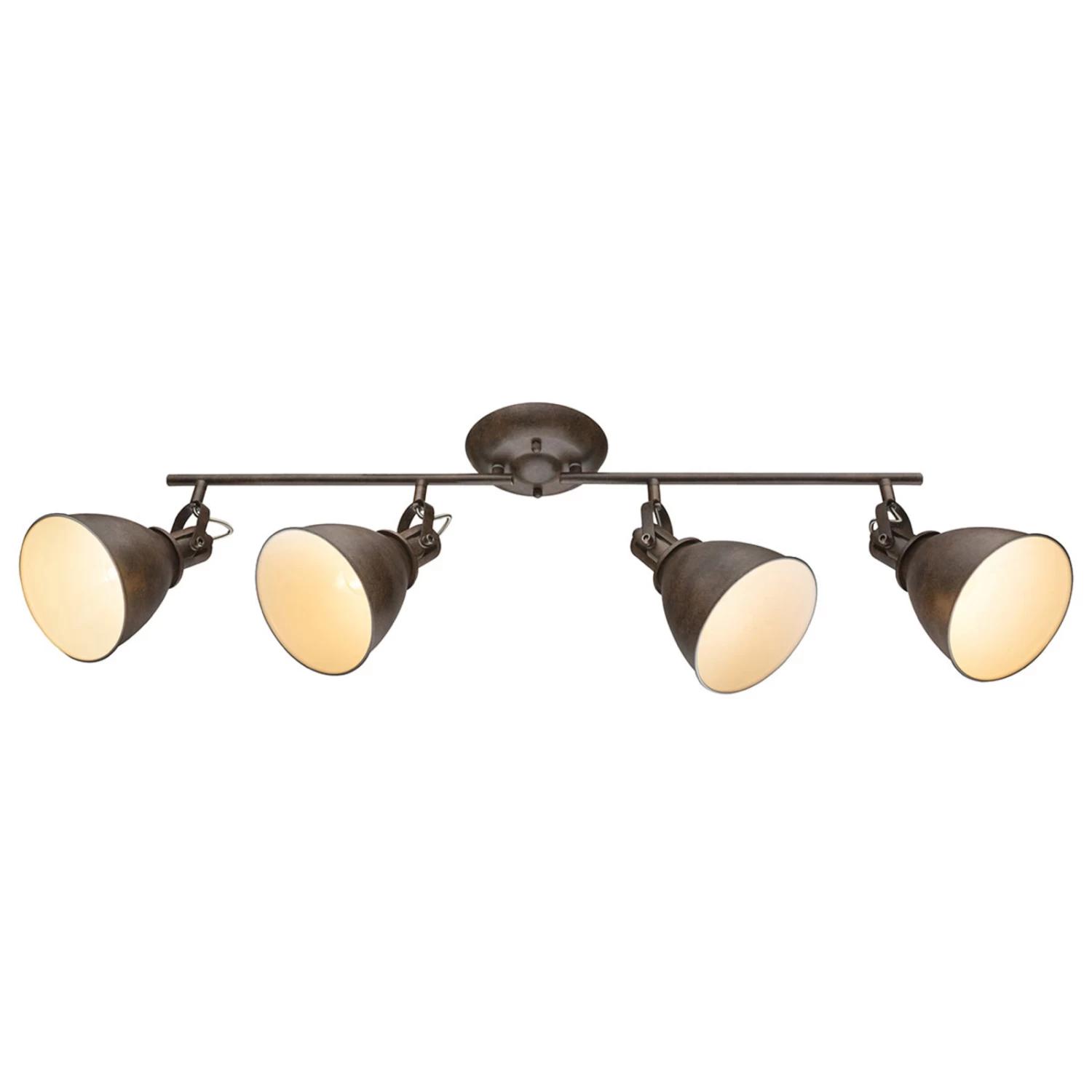 Von dem schlichten vierflammigen Deckenspot Giorgio in Rostbraun profitieren in erster Linie Wohnwelten im Vintage- und Industrial-Look sowie minimalistische Einrichtungslösungen. Um eine harmonische Atmosphäre entstehen zu lassen, ist die Deckenleuchte Giorgio vorrangig mit ähnlich gestalteten Lichtquellen zu kombinieren. Wird bewusst ein spannender Stilmix angestrebt, dürfen aber auch Leuchten mit Textil- und Glasschirmen zum Einsatz kommen.