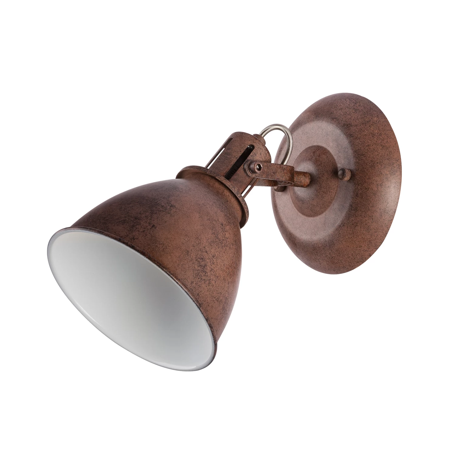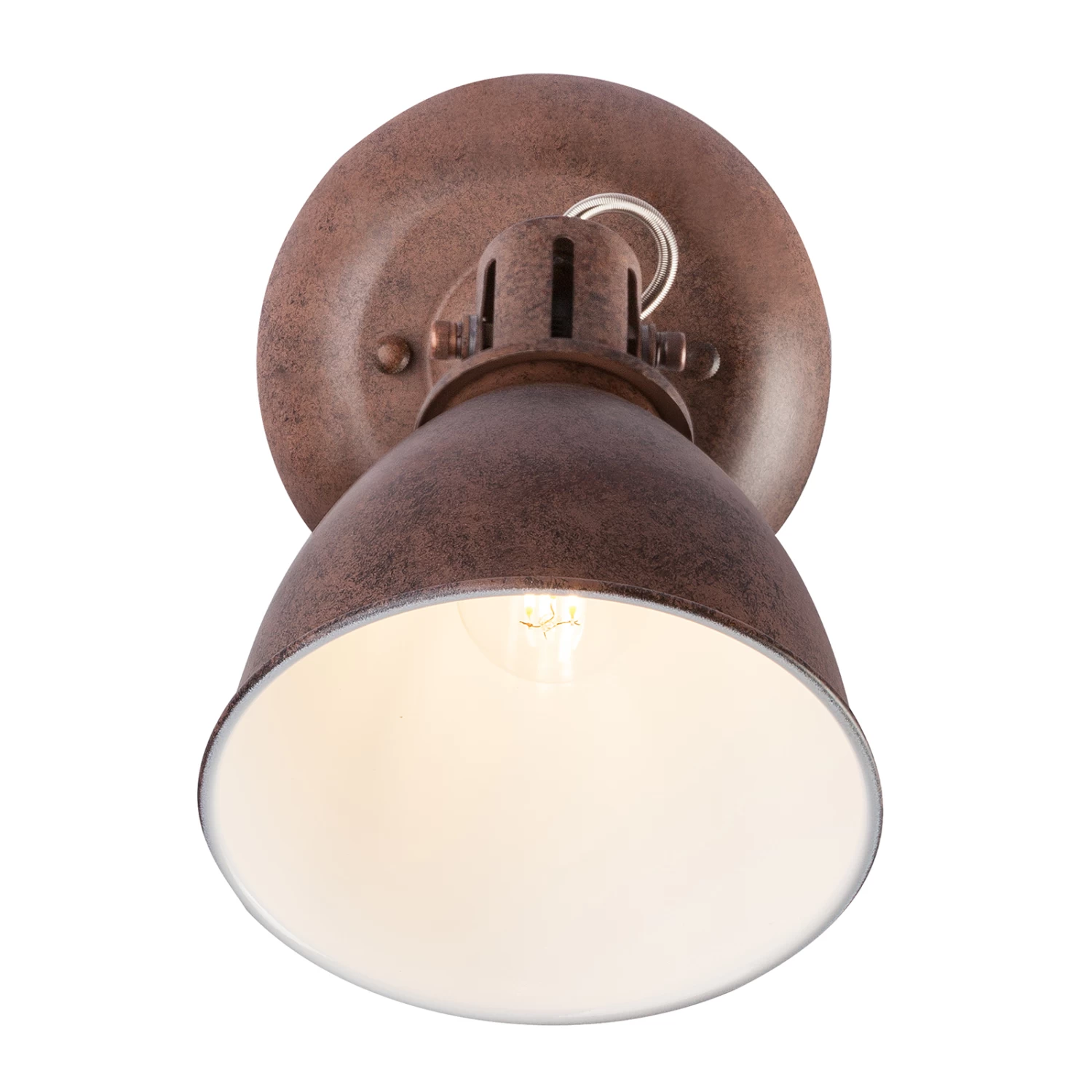 Beim Design der Wandlampe Giorgio stand der praktische Nutzen klar im Vordergrund. Die Gestalter ließen sich von den innovativen Ideen des Zeitalters der Industrialisierung inspirieren, um diese funktionelle und schlichte Lichtquelle zu entwerfen. Der Wandspot Giorgio kann stufenlos eingestellt werden, um bestimmte Bereiche zu beleuchten. Die weiße Innenfläche des Lampenschirms dient als Rückstrahler und verstärkt die Lichtausbeute. Die rostbraune Farbe der Außenfläche betont die zurückhaltende Vintage-Optik dieser Lampe.