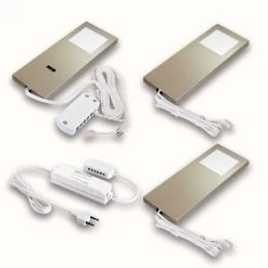 Ob in der Küche als sicheres Arbeitslicht oder als Akzentbeleuchtung im Wohnbereich – die LED-Unterbauleuchte Slim-Pad-F in Edelstahl-Optik wird im 3er-Set geliefert und bietet homogenes Flächenlicht (3.000 K) mit behaglicher Lichtwirkung. Inklusive Anschlussleitung (2,4 m) mit LED 24-Stecker. Mit Trafo (30 W – bis 6 Leuchten erweiterbar) ausgestattet.