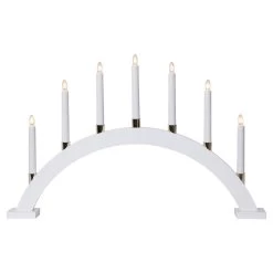 Der siebenflammige Holz-Lichterbogen Gillian in nordischem Look fällt vielleicht gerade aufgrund seiner offensichtlichen Einfachheit so angenehm auf. Schnörkellos aus lackiertem Holz gestaltet und mit weißen Kerzenleuchten bestückt, passt er zu vielen Wohnstilen und sorgt zum Beispiel im Fenster für weihnachtlichen Lichterglanz, der die Vorfreude auf das Fest steigert.