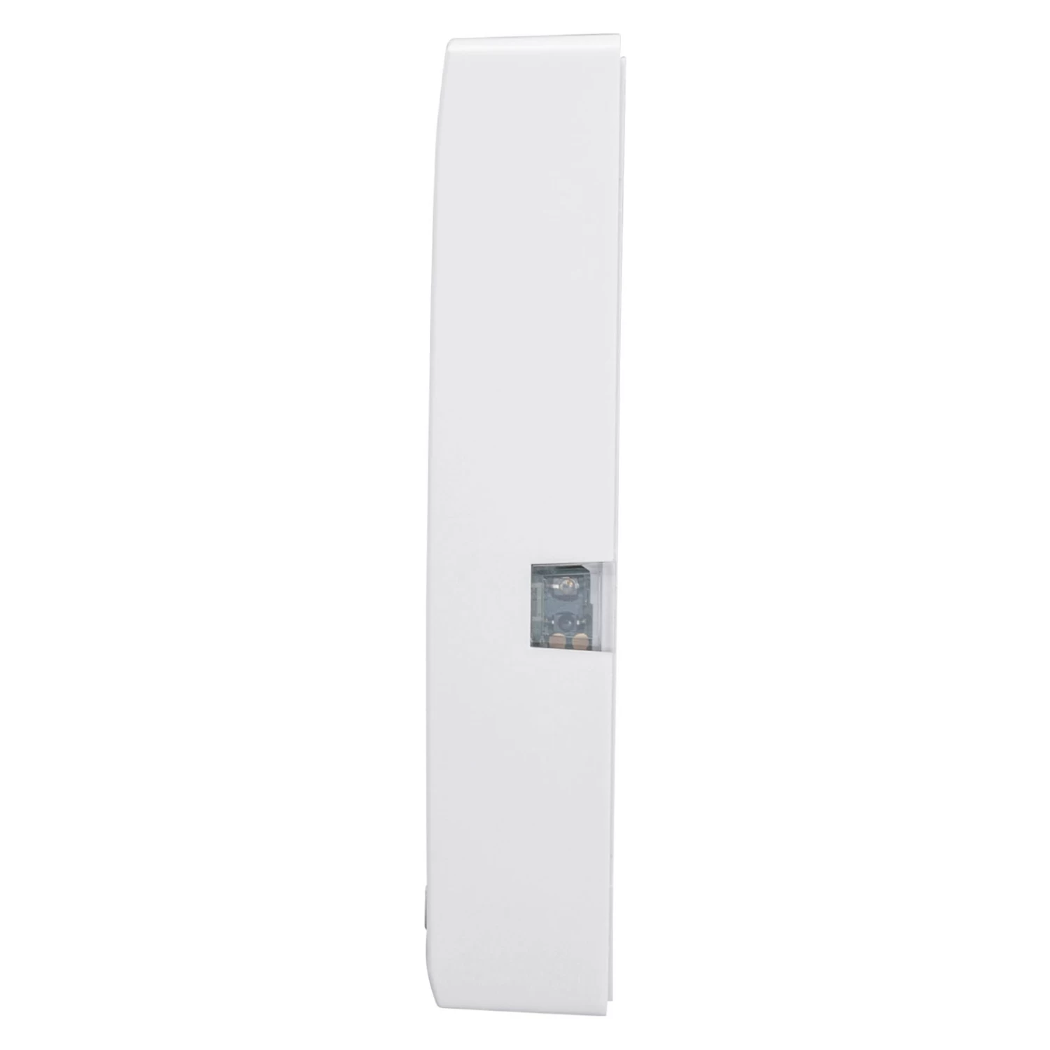 Dieser Öffnungssensor von Homematic IP dient als optischer Tür- und Fensterkontakt und erfüllt gleich mehrere Zwecke. Einerseits kann die Energieeffizienz der Heizung verbessert werden und gleichzeitig dient er zur Zutrittskontrolle. Dies funktioniert mittels einer Infrarot-Lichtschranke, so dass kein Gegenkontakt benötigt wird.