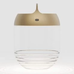 Etwa zwei Drittel der Leuchte bestehen aus formschönem, mundgeblasenem Kristallglas, das nach oben mit einem Aluminiumguss-Element abschließt und mit feinen Rillen versehen ist. Durch die Rillen entsteht ein toller Lichteffekt in der unmittelbaren Umgebung, der Kreise auf der Boden- oder Tischfläche abzeichnet. Die warmweißen LEDs streuen ihr Licht rundherum und erzeugen eine behagliche Stimmung, die durch die dreistufige Dimmbarkeit zusätzlich unterstrichen werden kann.