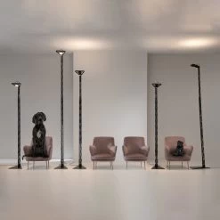Marc Sadler ist es bei der matt schwarzen Stehleuchte Fireman gelungen Funktionalität und Design zu einem besonderen Beleuchtungsobjekt zu vereinen. Hier gibt der Name einen Hinweis auf die Inspirationsquelle: Das Aluminiumgerüst ist der Drehleiter eines Feuerwehrautos nachempfunden und soll an New York’s historische Feuertreppen erinnern. Die ausziehbaren Profile lassen sich zwischen 215 und 325 cm verstellen.