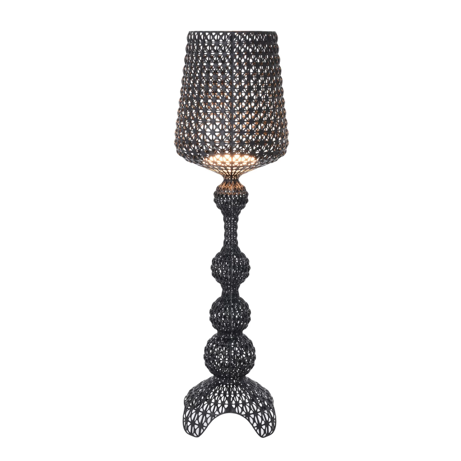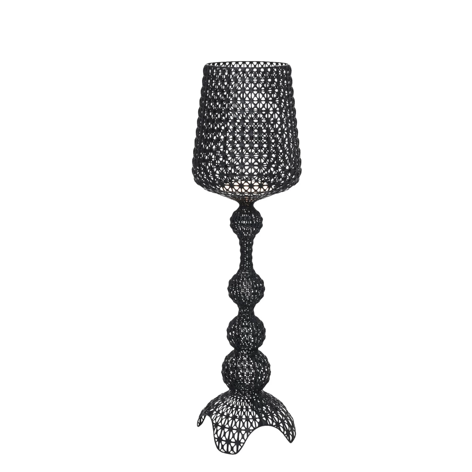 Durch die Schutzart IP44 ist das Modell Kabuki keine gewöhnliche Stehleuchte, die man in der Regel im Wohnzimmer vorfindet, sondern sie ist relativ witterungsbeständig und kann im Außenbereich eingesetzt werden. Die Terrasse, die Loggia oder der Balkon sind für so ein Schmuckstück wie Kabuki der richtige Ort, um zu glänzen. Gestell und Schirm sind gleichermaßen aus thermoplastischem Technopolymer im Spritzgussverfahren hergestellt. Mit Hilfe dieses Verfahrens kann man eine Oberfläche herstellen, die mit kleinen Auslassungen übersät ist und von der Struktur her an Spitze erinnert.