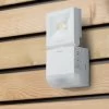Der Bewegungsmelder hat eine Reichweite von 5 m und einen Erfassungswinkel von 140°. Die Leuchtdauer kann von 5 Sek. bis 8 Min. eingestellt werden.