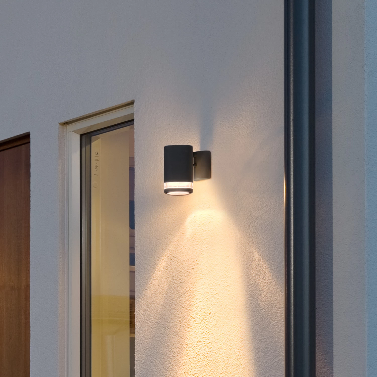 Die zierliche Form lässt sich platzsparend anbringen und ermöglicht unterschiedlichste Einsatzmöglichkeiten auf Zuwegen, auf der Terrasse oder auf dem Balkon. Das nach unten strahlende Licht wird durch transparentes Acryl indirekt abgegeben, was für eine angenehme Ausleuchtung von Eingangsbereich oder Fassade sorgt. Passendes Leuchtmittel ist über das Zubehör erhältlich.