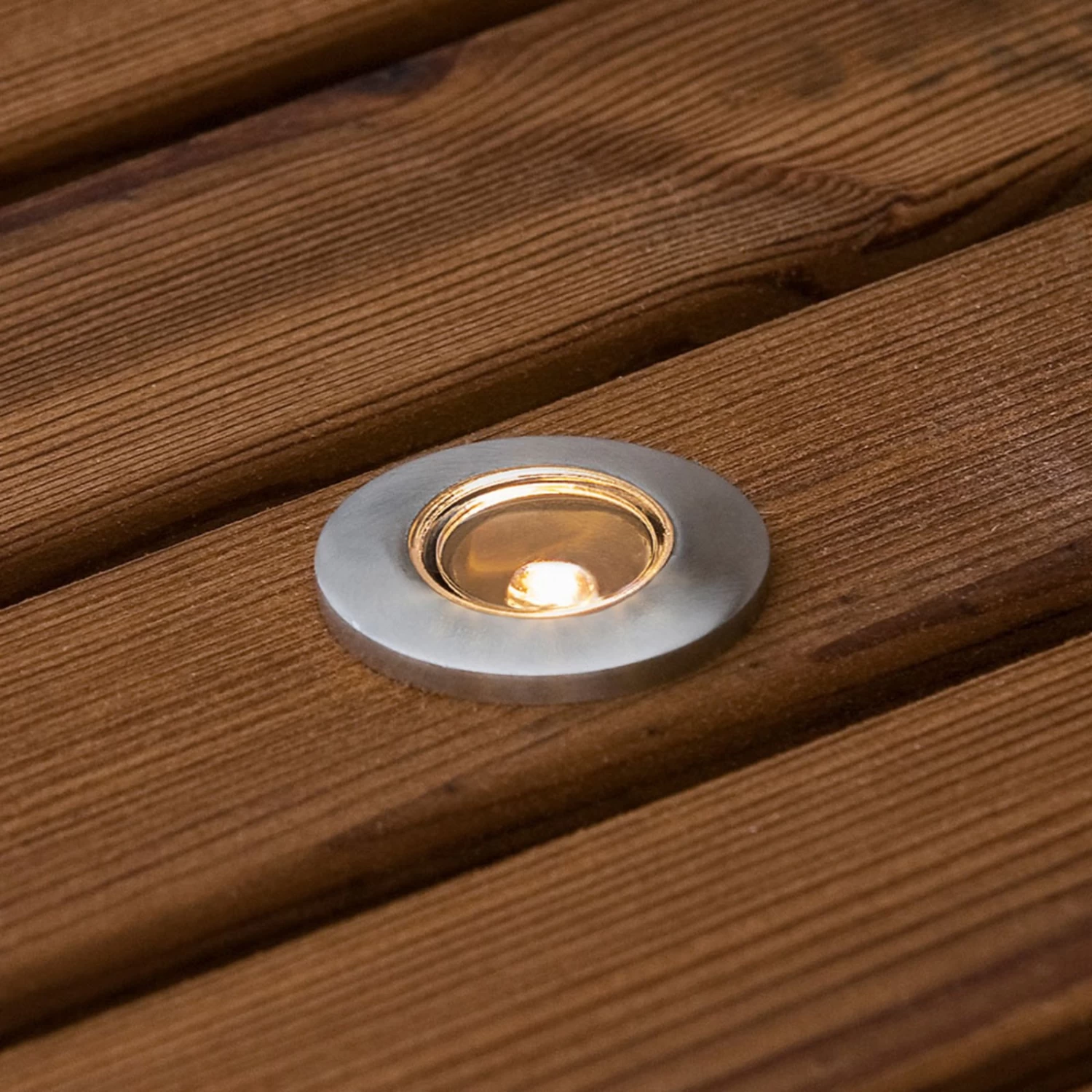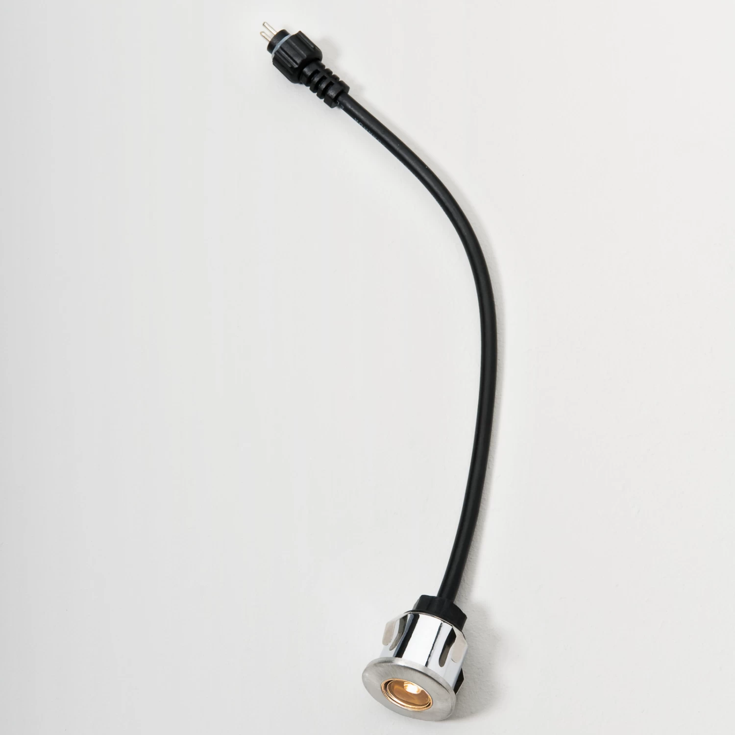 Die Bodeneinbaustrahler Mini können im Außenbereich, zum Beispiel im Bereich der Terrasse oder in Beeten eingesetzt werden. Die sechs hier mitgelieferten Niedervolt-Strahler sind mit einem Kabel verbunden und können im Abstand von ca. 2m gesetzt werden. Der passende Transformator ist im Lieferumfang enthalten. Eine Erweiterung um drei passende Leuchten ist möglich. Ein passendes Set ist über das Zubehör erhältlich.