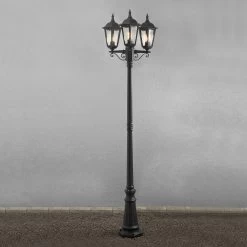 FIRENZE ist eine antik wirkende Mastleuchte aus Aluminium mit drei formschönen Laternen, die auf dem schön verzierten Mast im Dreieck angeordnet sind. Diese garantieren eine sehr gute Ausleuchtung des Außenbereichs.