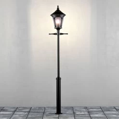 Optisch weiß diese Leuchte durch ein ungewöhnliches Design zu überzeugen, das sowohl zeitlos anmutet und sich darüber hinaus antiker Konzeptionen bedient. Der Leuchtenkörper von VIRGO besteht aus einem rauchfarbenen Acrylglas, wodurch das sanfte Licht vor äußeren Einflüssen geschützt wird. Der antike Eindruck entsteht in erster Linie durch den Leiterhalter – die Leuchte selbst besitzt eine maximale Gesamtlänge, die bei 2,55 Metern in der Höhe liegt. Der Pfahl ist im Lieferumfang enthalten. Mit ihrem zeitlosen Design gehört die Mastleuchte zur hochwertigen „Classic“ Serie.