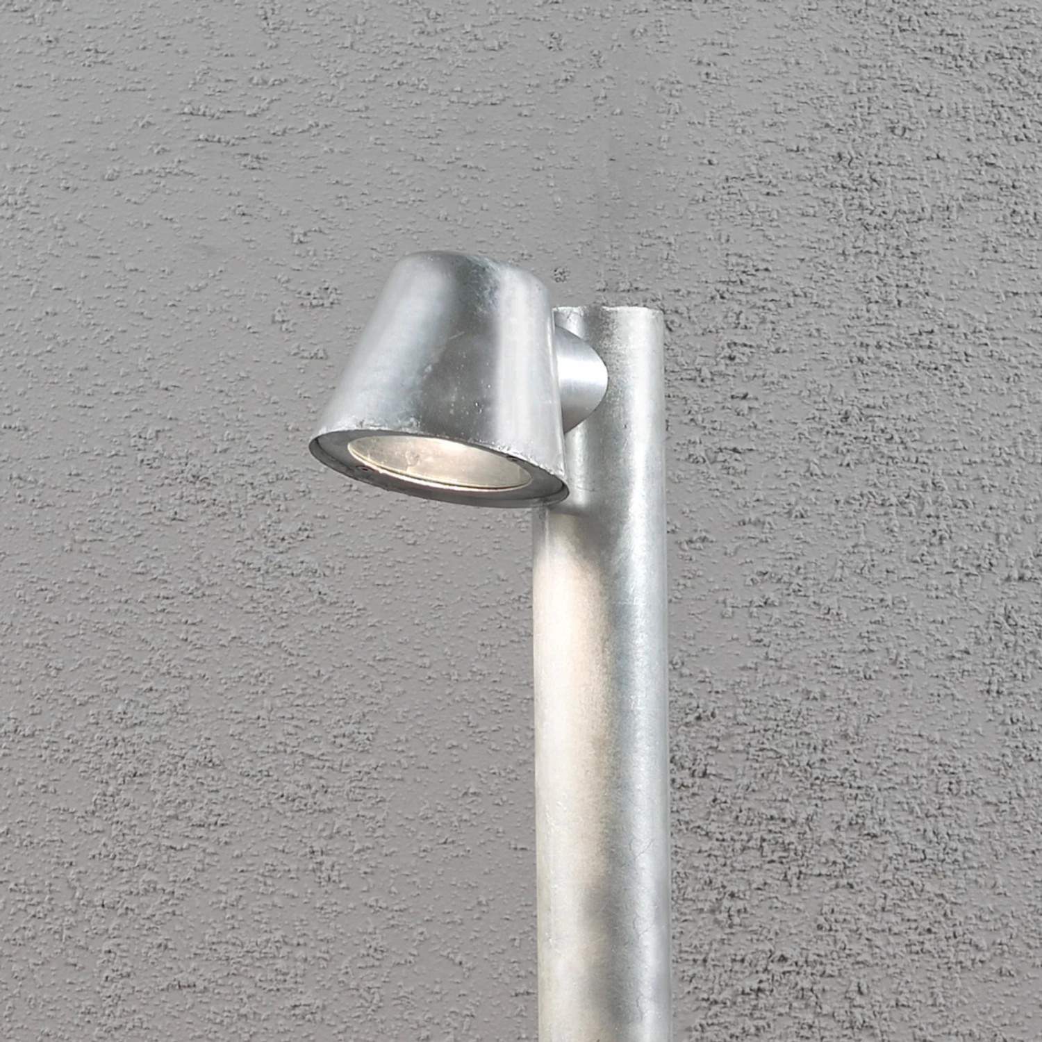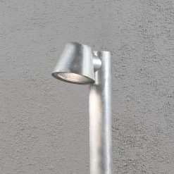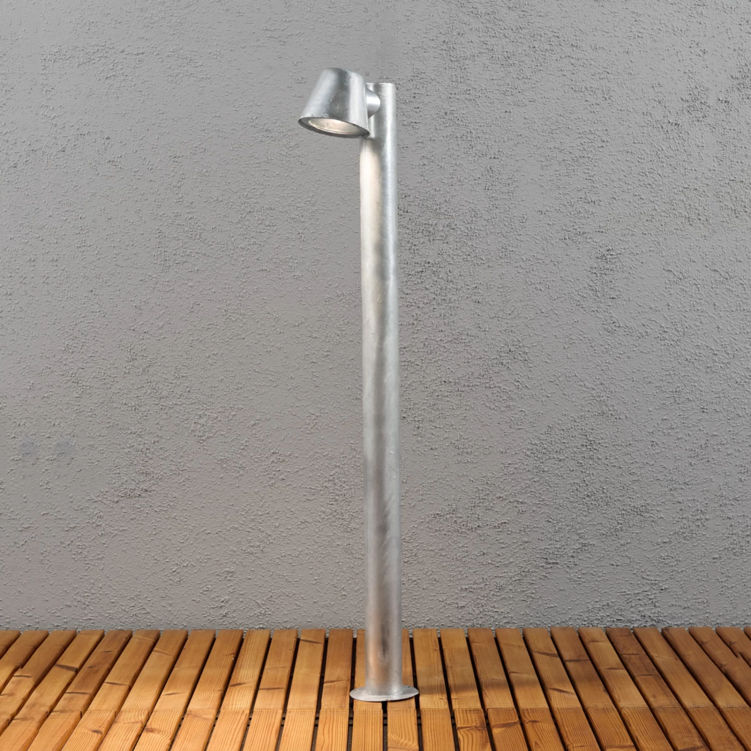 Auf einen ersten Blick wirkt sie ein wenig wuchtig. Diese Leuchte aus Stahl erscheint zumindest nicht filigran. Dies bedeutet für den Betrachter, dass die Wegeleuchte mit dem robusten Pfahl und einem dick ummantelten Spot im Außenbereich Wind und Wetter oder mechanischen Belastungen gut stand hält.