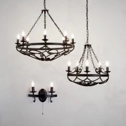 Der recht große, achtflammige Kronleuchter Cartwheel passt in viele Einrichtungsstile und erhellt auch große Räume. Der runde Kronleuchter wurde aus Stahl hergestellt und matt-schwarz lackiert. Die Verzierungen, mit denen das runde Gestell nach unten gearbeitet wurde, machen ihn zum dekorativen Blickfang mit besonderem Charakter. Die Kettenaufhängung macht den Look perfekt.
