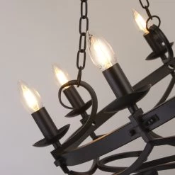 Großer Kronleuchter Cartwheel, achtflammig in mattem Schwarz