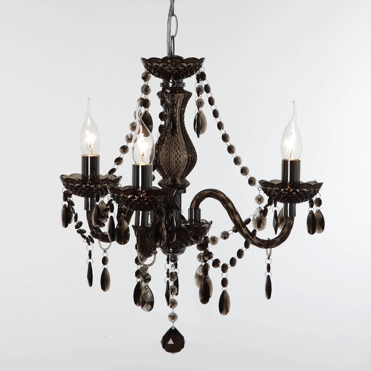 Schwarze Acrylglassteine zieren den Kronleuchter Perdita