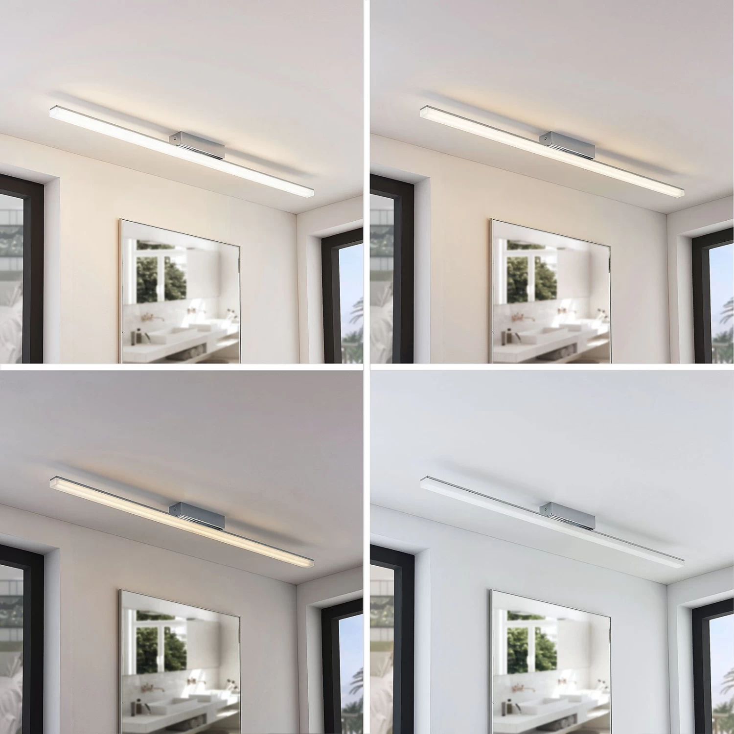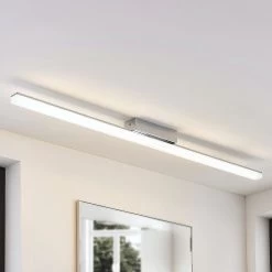 Levke bietet hellen Lichtschein für ein Badezimmer und die integrierten LEDs leuchten in warmweißer Lichtfarbe. Dabei kann die Leuchte auch ohne Dimmer in der Helligkeit reguliert werden, denn bei Levke erfüllt ein ganz normaler Wandschalter diesen Zweck. Mit ihm kann die Deckenleuchte so geschaltet werden, dass sie entweder zu 100 Prozent, zu 50 Prozent oder zu 10 Prozent leuchtet. Die Deckenarmatur ist verchromt, das ist neben der Schutzart IP44 ein weiterer Grund, warum die LED-Deckenlampe gut ins Bad passt, weil das spiegelnde Chrom gut mit Armaturen an Waschtisch, Badewanne und Dusche harmoniert.