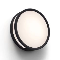 Ein schwarzer, runder Rahmen aus Aluminiumguss umhüllt bei der LED-Deckenleuchte Rola den opalen Diffusor. Dadurch strahlt das warmweiße Licht gleichmäßig nach außen. Ein Seitenschlitz ermöglicht, dass die Illumination auch an den Seiten stattfindet. Rola kann um das ganze Haus herum nutzbringend montiert werden. Rola kann auch für die Montage an der Wand eingesetzt werden.