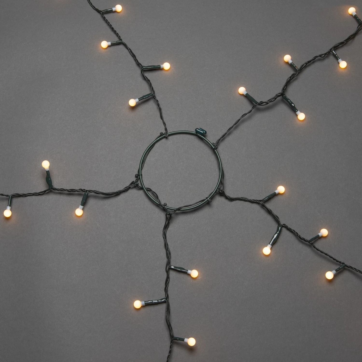 Einen Christbaum zu schmücken, muss nicht zeitaufwendig sein. Mit dem LED-Baummantel mit bernsteinfarben leuchtenden Dioden in vormontierten Globe-Lampen gestaltet sich die festliche Bestückung des Baumes ganz einfach. Der Baummantel wird einfach übergestülpt und schon fließen rundherum fünf Stränge über den Baum. Mit grünem Kabel ausgestattet.