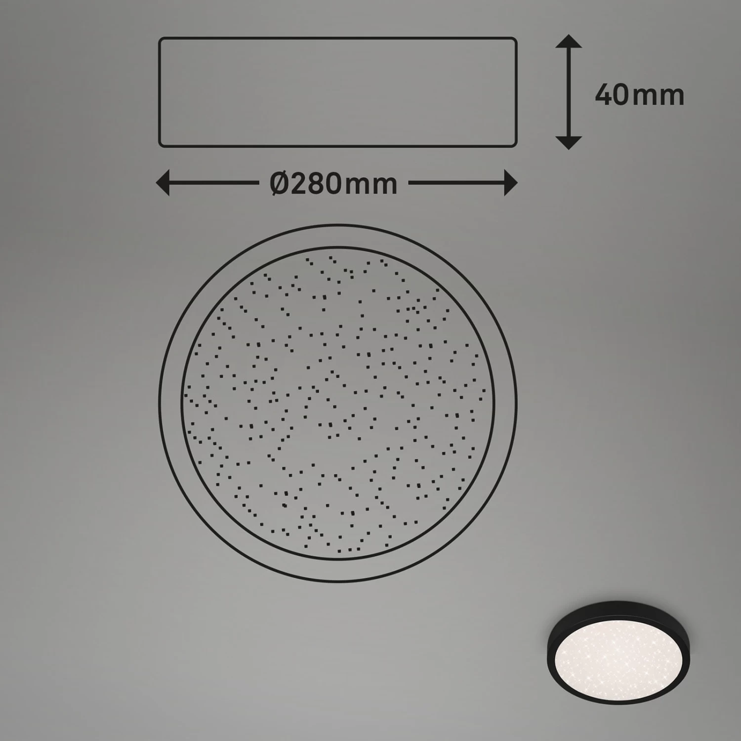 Die LED-Deckenleuchte Runa für den Außenbereich überzeugt mit einem Sternenhimmeleffekt, der für ein ansprechendes Design sorgt. Die Form der LED-Außenlampe ist rund. Die Lichtquelle des Sternenhimmels für Außen leuchtet in einer neutralweißen Farbtemperatur von 4.000 Kelvin. Das Licht wird mit 18,5 Watt bei 2.000 Lumen in Werkstatt, Gartenhütte, Gartenlaube oder Carport verteilt. Zusätzlich ist die LED-Gartenlampe auch passend für Terrasse, Veranda, Balkon und Hauseingänge. Die Außenleuchte ist mit der Schutzart IP44 ausgestattet und ist folglich Spritzwassergeschützt.