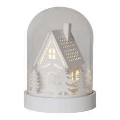 Sanft beleuchtete LED-Dekoleuchte Kupol mit Hausszene