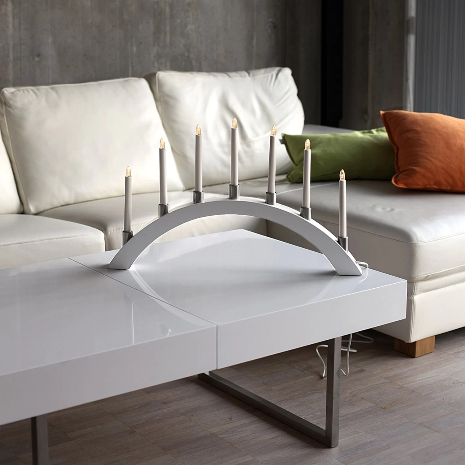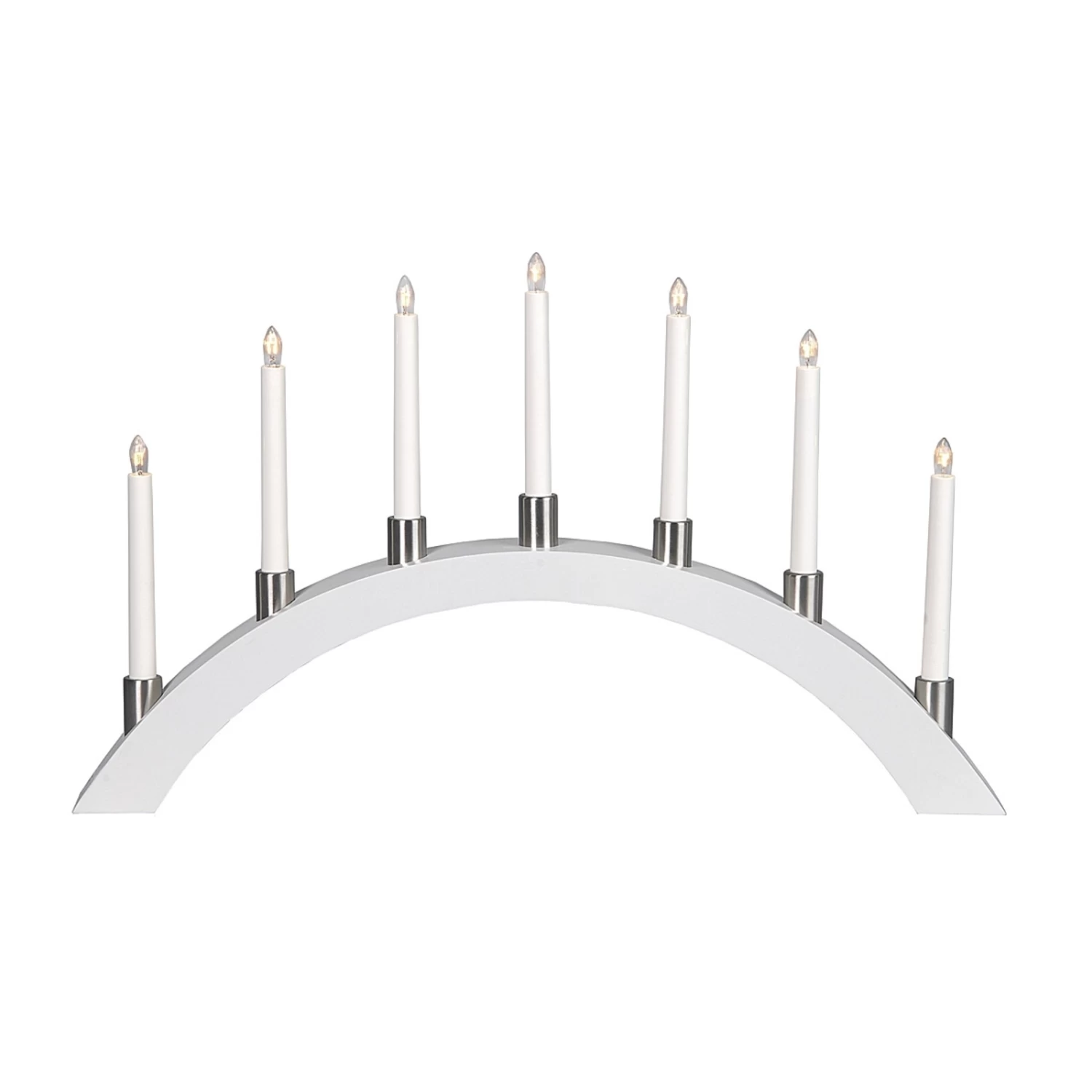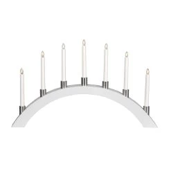Das Besondere an diesem Lichterbogen ist, dass die sieben Kerzen mit LED-Leuchtmitteln ausgestattet sind, so dass der gesamte Lichterbogen insgesamt nur 0,7 Watt benötigt. Sparsamer und schöner kann Weihnachtsbeleuchtung kaum sein!