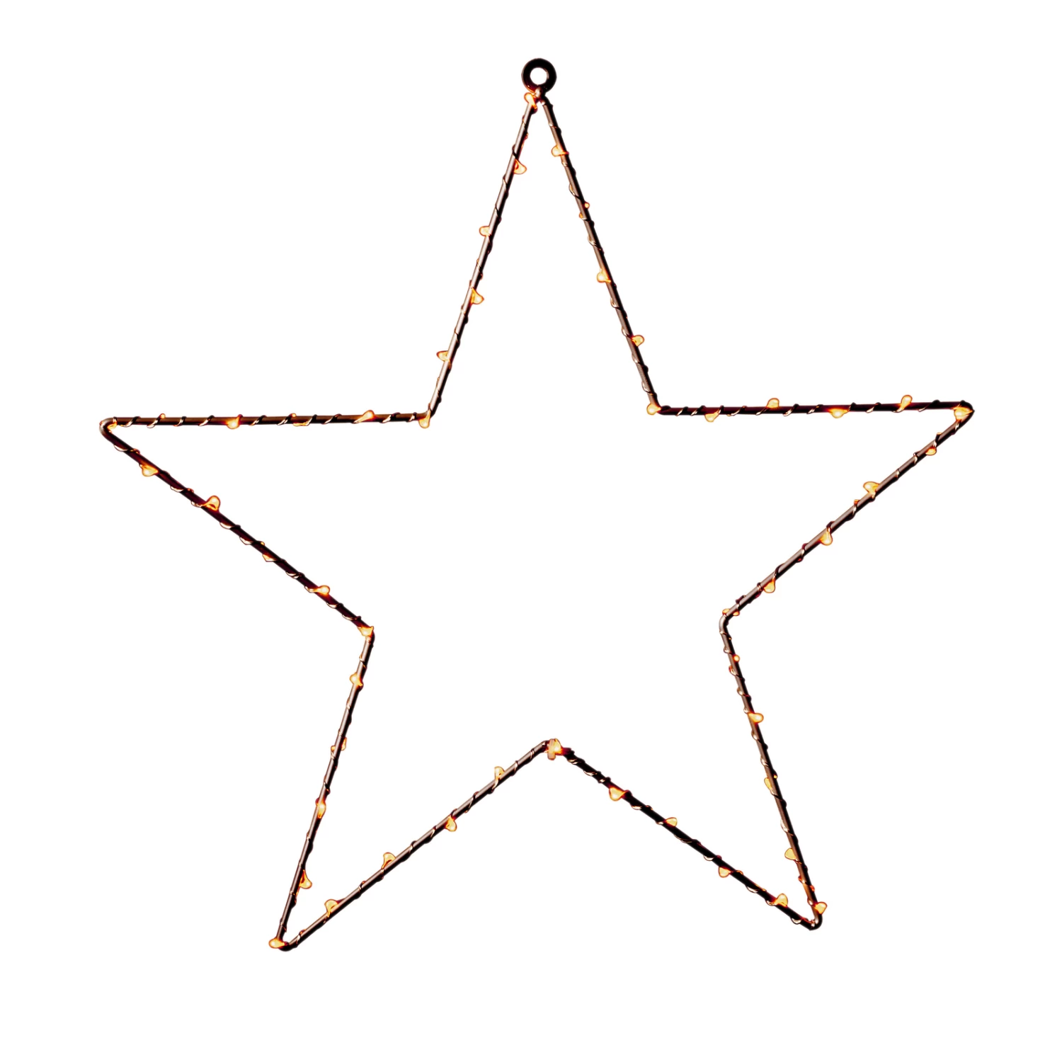 Der LED-Metallstern ist mit Draht umwickelt und rundherum mit LEDs bestückt, die mit ihrem weichen, bernsteinfarbenen Licht sowohl den Stern selbst als auch die Umgebung wundervoll illuminieren. Ein Dekorartikel für die Weihnachtszeit, der als Fenster- oder Wandschmuck eingesetzt werden kann.