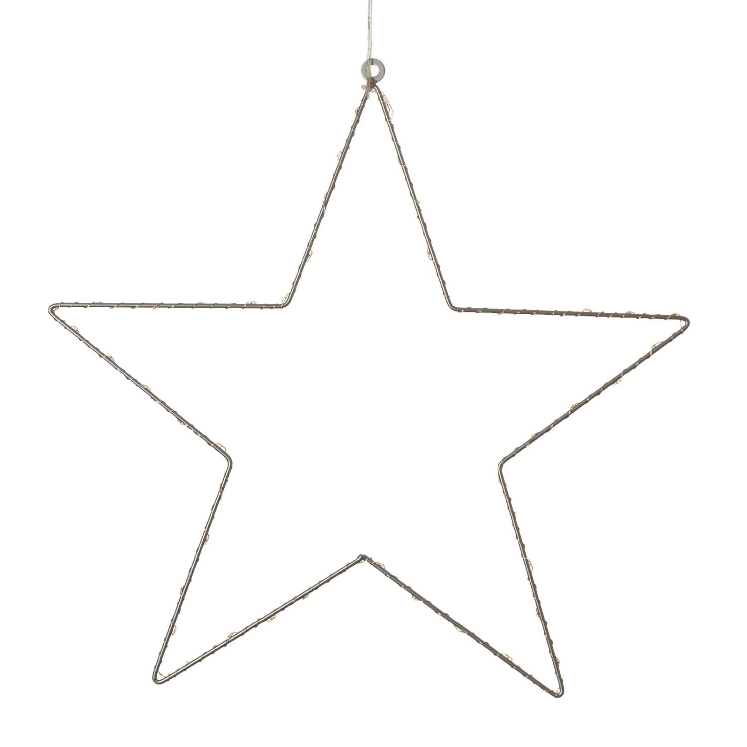 Der LED-Metallstern ist mit Draht umwickelt und rundherum mit LEDs bestückt, die mit ihrem weichen, bernsteinfarbenen Licht sowohl den Stern selbst als auch die Umgebung wundervoll illuminieren. Ein Dekorartikel für die Weihnachtszeit, der als Fenster- oder Wandschmuck eingesetzt werden kann.