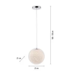 Die LED-Pendellampe Bolo ist ein wahrer Blickfang in jedem Raum. Der weiße Kugelschirm aus Glas in Kombination mit dem glänzend verchromten Eisen-Gestell verleiht der Lampe eine zeitlose Eleganz. Das warmweiße Licht strahlt rundherum und schafft eine angenehme Atmosphäre.