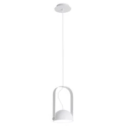 Hemi ist eine moderne LED-Hängeleuchte mit schwenkbarem Leuchtenkopf, der wie eine Halbkugel von einem metallischen Bügel gehalten wird. Durch den Bügel verläuft das Zuleitungskabel hin zum runden Deckenbaldachin. Die im Leuchtenschirm verbauten LEDs strahlen warmweißes Licht nach unten ab, was dank schwenkbarer Eigenschaften des Schirmes auch individuell ausgerichtet werden kann. Die Leuchte Hemi ist mit ihren klaren, geometrischen Formen sehr modern und die sichtbaren Schrauben verleihen ihr einen industriellen Look. Hemi eignet sich hervorragend zur Beleuchtung über dem Esstisch im Wohnbereich oder in der Küche sowie zur Ausleuchtung von Eingangsbereichen.
