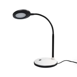 Ivan wird sicher an vielen Stellen als praktische Ergänzung dienen können. Die LED-Schreibtischlampe hat einen Schalter direkt am Fuß und ein Teil des Leuchtenarmes ist flexibel, so dass man die Lichtaustrittsrichtung besser regulieren kann. Der runde, flache Schirm sowie der Fuß der Leuchte sind in hellgrauem Kunststoff gehalten, der modern strukturiert ist.