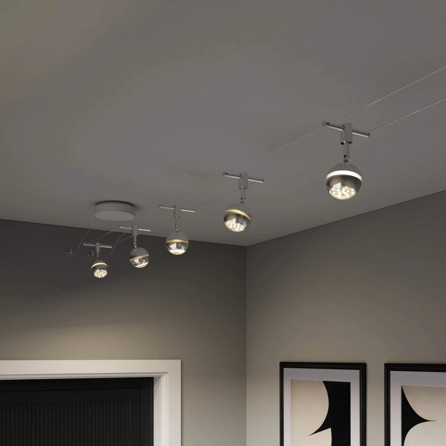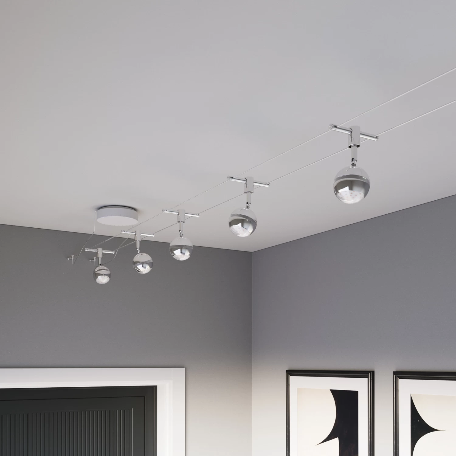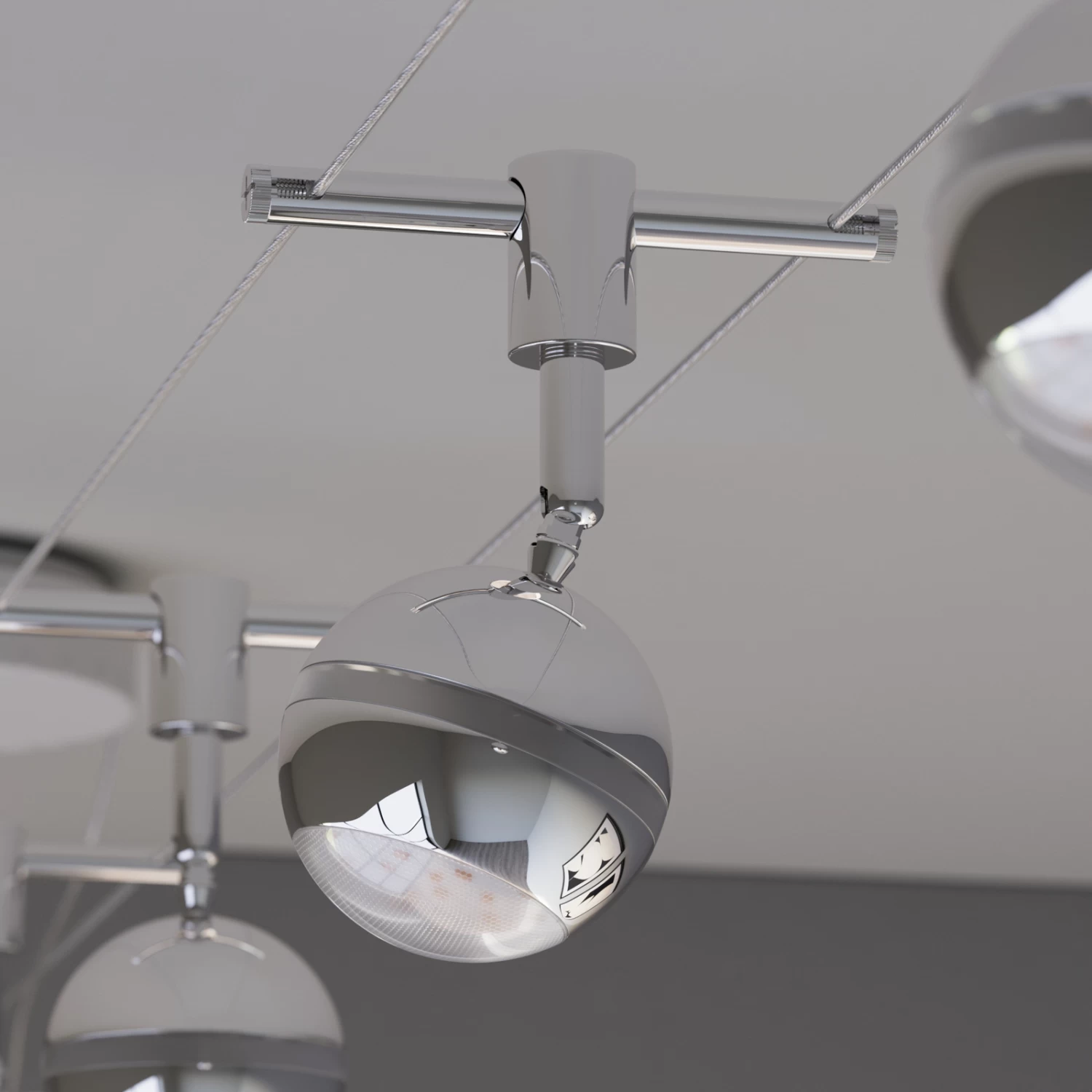 LED-Seilsystem Baloubet in Chrom mit runden Leuchten
