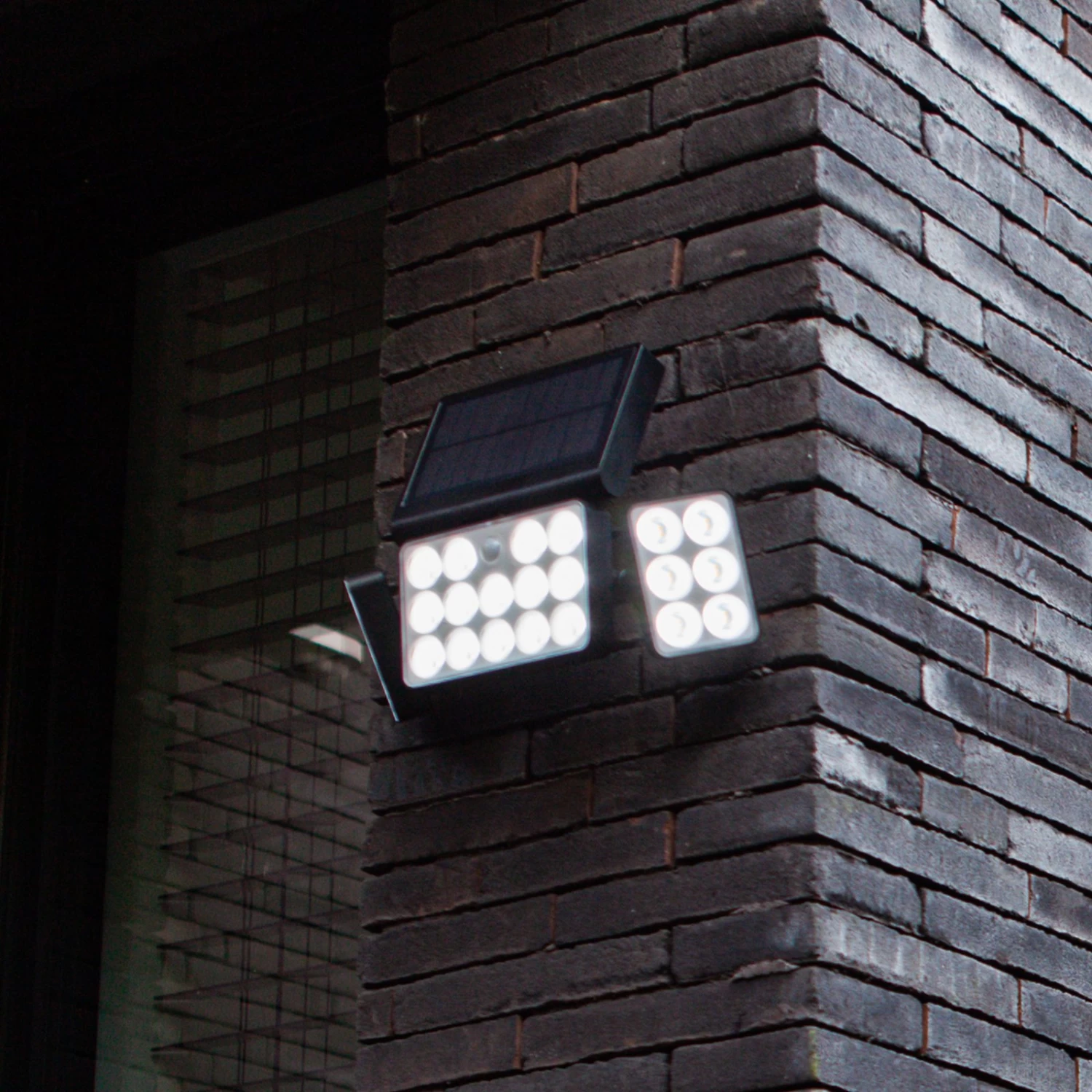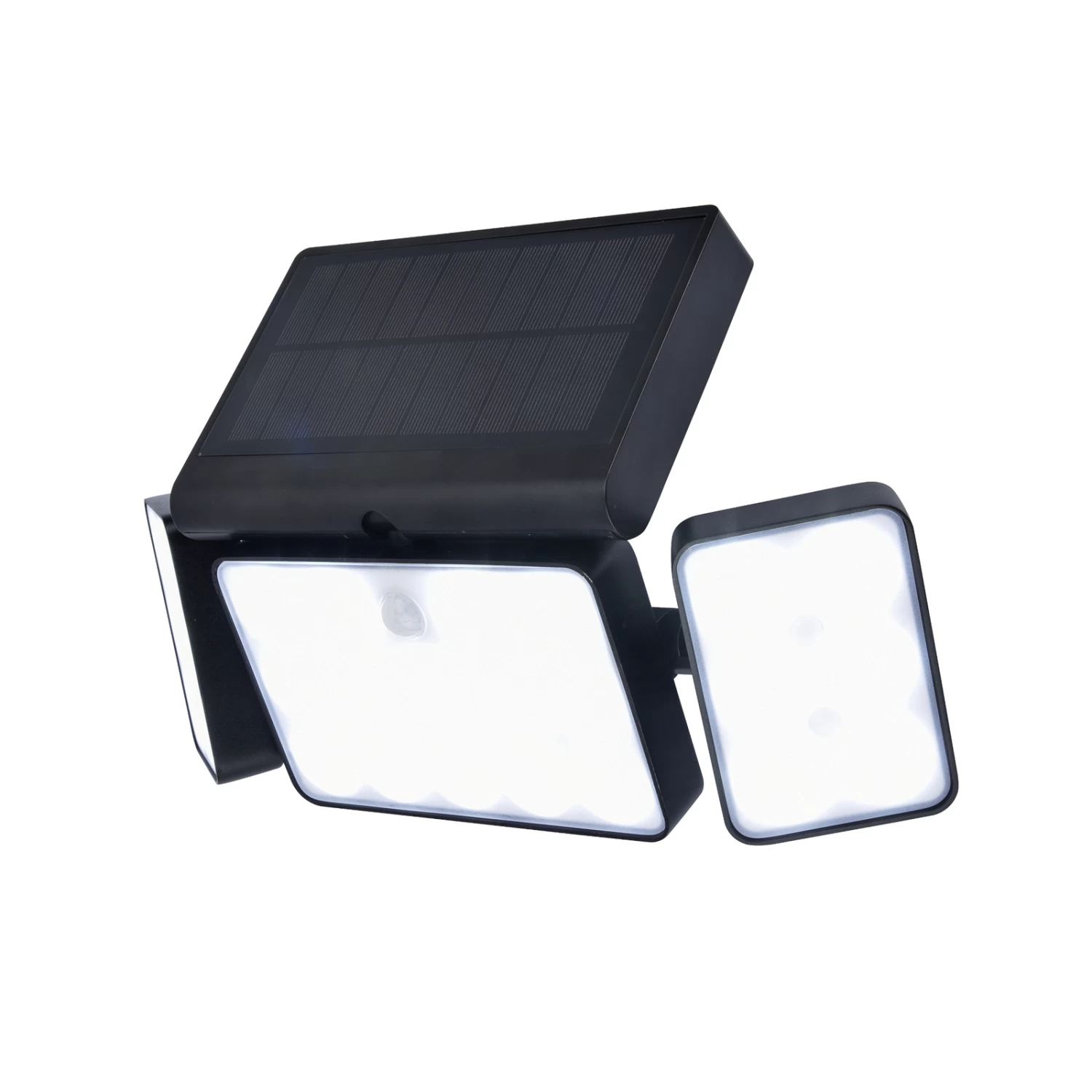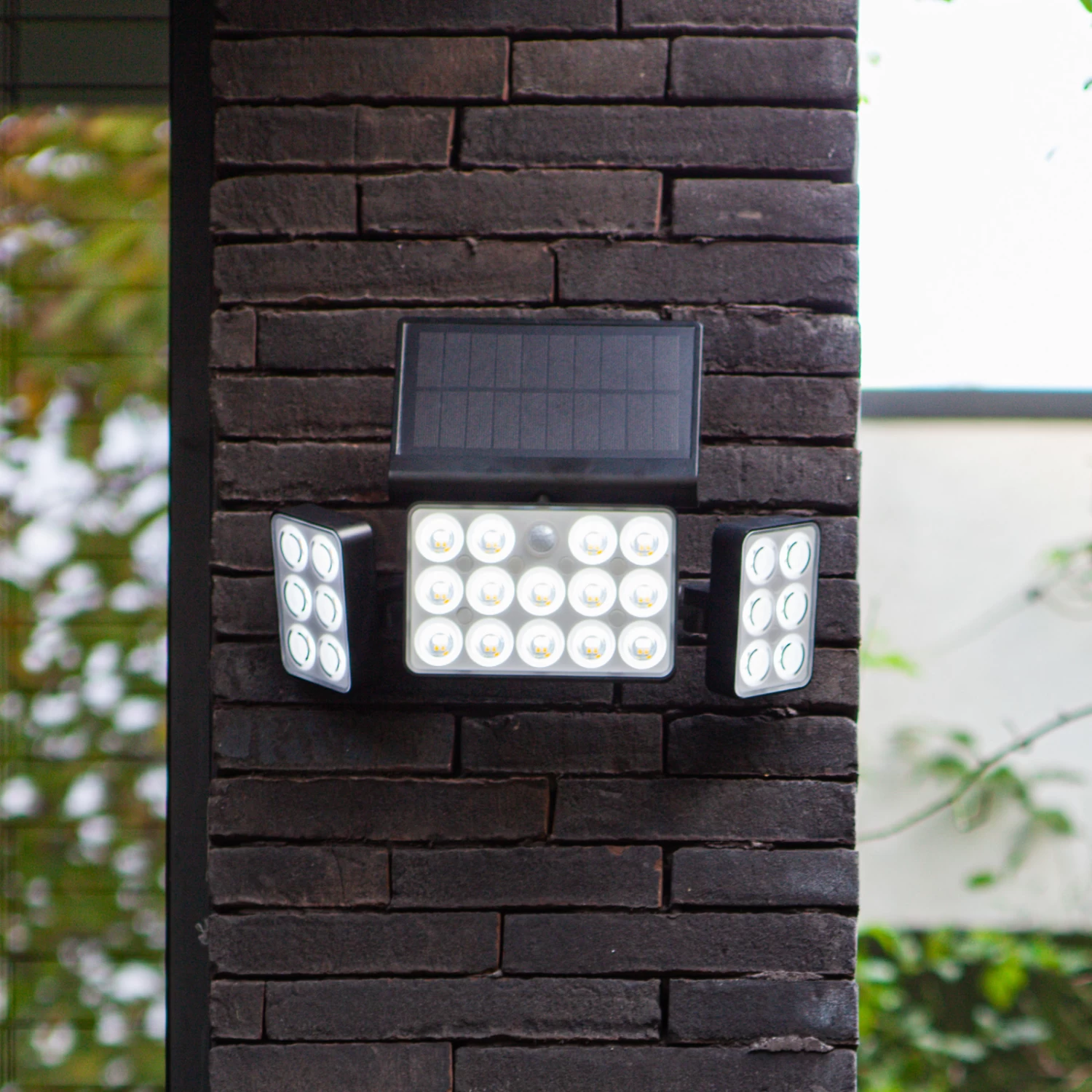Dreiköpfige LED-Solar-Außenwandleuchte Tuda mit Solarpanel und Bewegungsmelder
