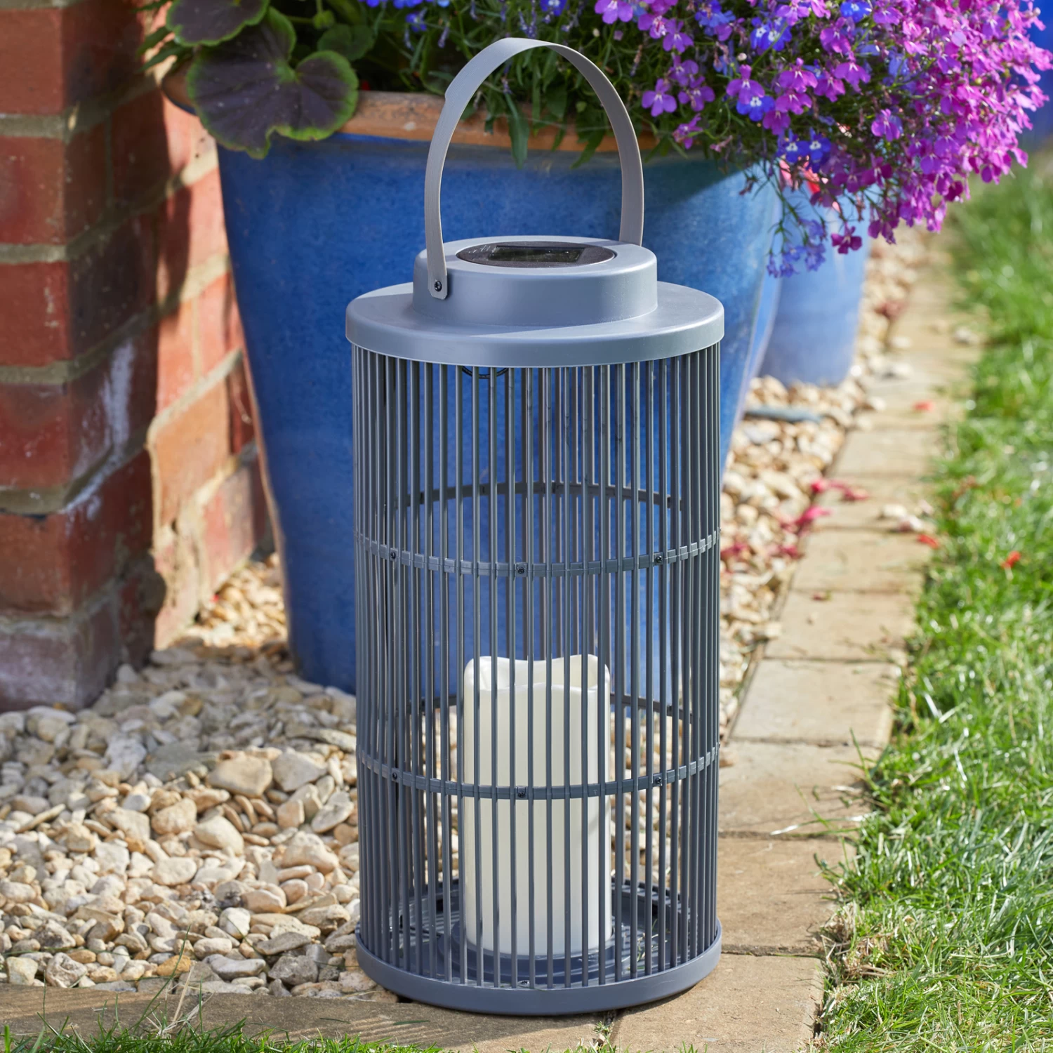 Die solarbetriebene Laterne Urbane besticht mit ihrem gitterartigen Design und ihrem besonders realistischen Flammeneffekt. Dieser schaltetet sich dank des integrierten Dämmerungssensors bei einbrechender Dunkelheit automatisch ein und sorgt für echtes Kerzenfeeling. Dank ihres Laternendesigns lässt sich Urbane sowohl hinstellen als auch aufhängen, so dass sie überall im Außenbereich platziert werden kann. Ein hübscher Eyecatcher für besondere Lichtmomente!