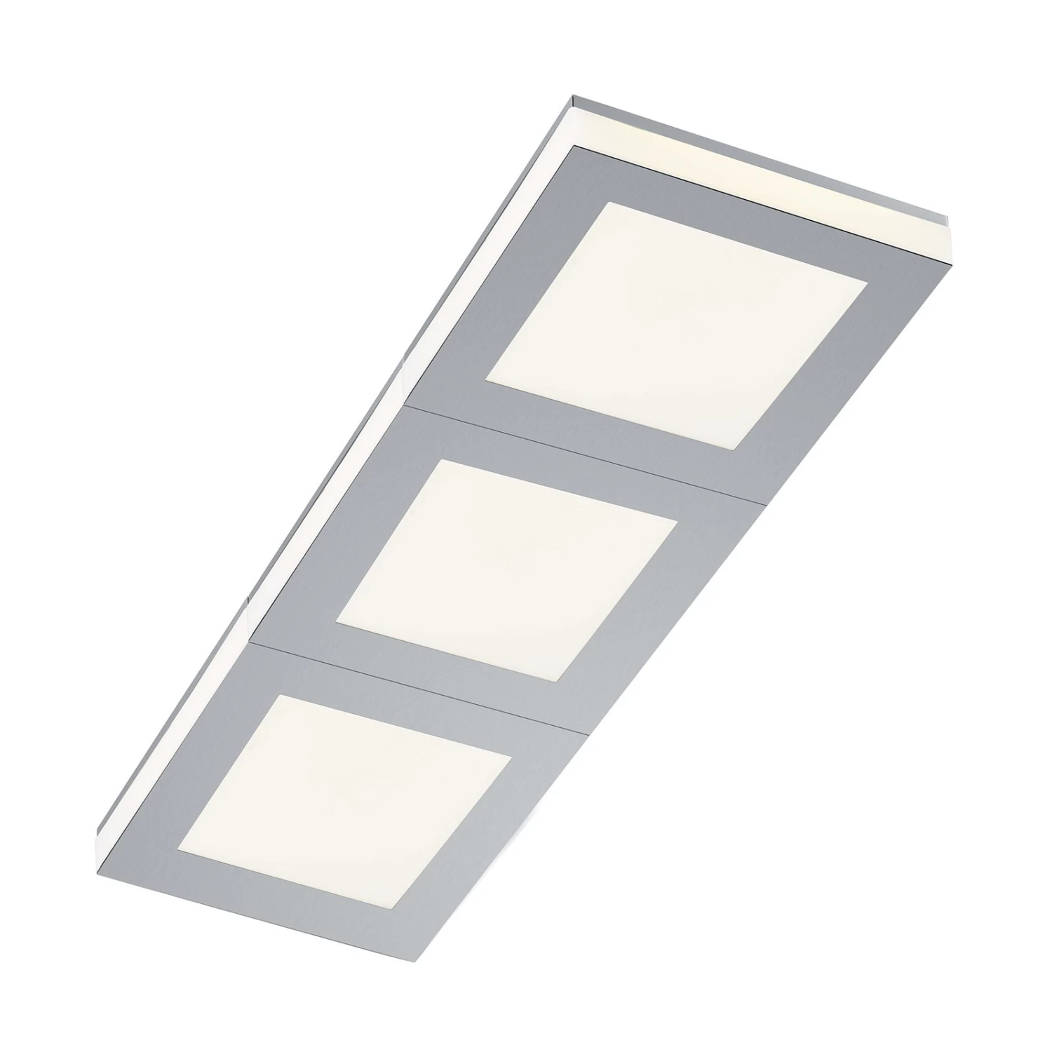 Quadro ist eine moderne und gleichermaßen sehr zeitlose LED-Wandleuchte in rechteckiger Form, die optisch durch die frontseitigen Blenden aus silbern eloxiertem Metall in drei Quadrate unterteilt wird. Ob horizontal oder auch vertikal an der Wand oder auch an der Decke montiert – mit der LED-Leuchte Quadro wird ein Wohnraum oder ein Flur warmweiß, hell und sehr gleichmäßig beleuchtet, und zwar nicht nur direkt, sondern auch indirekt durch den breiten Rand des Acrylkörpers der Leuchte.