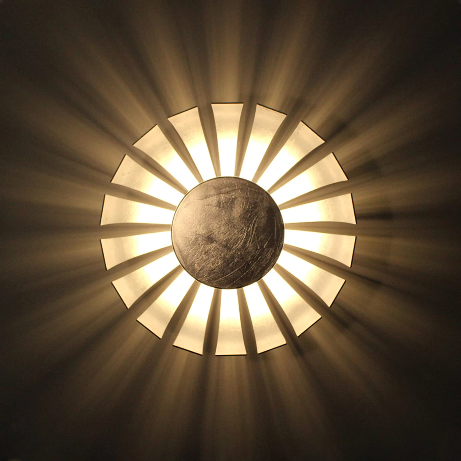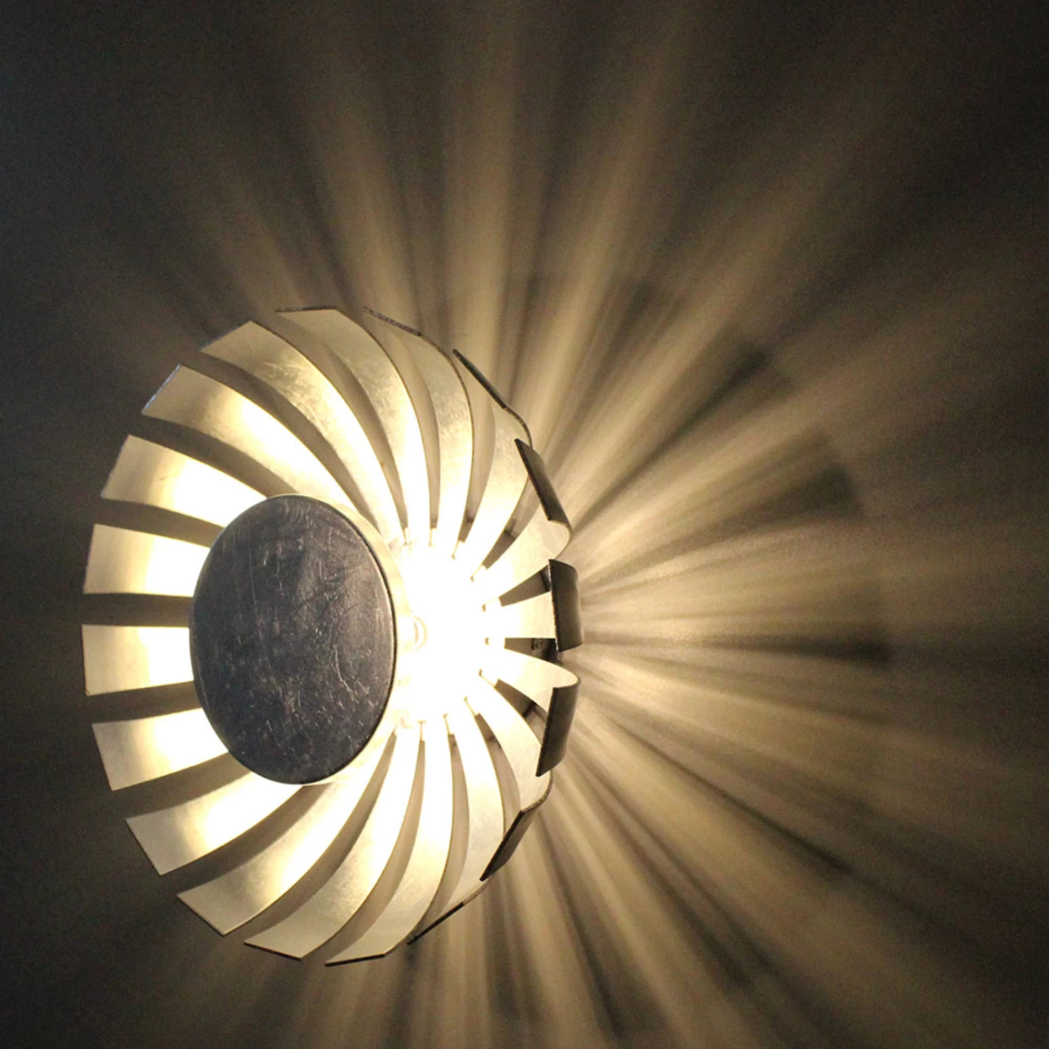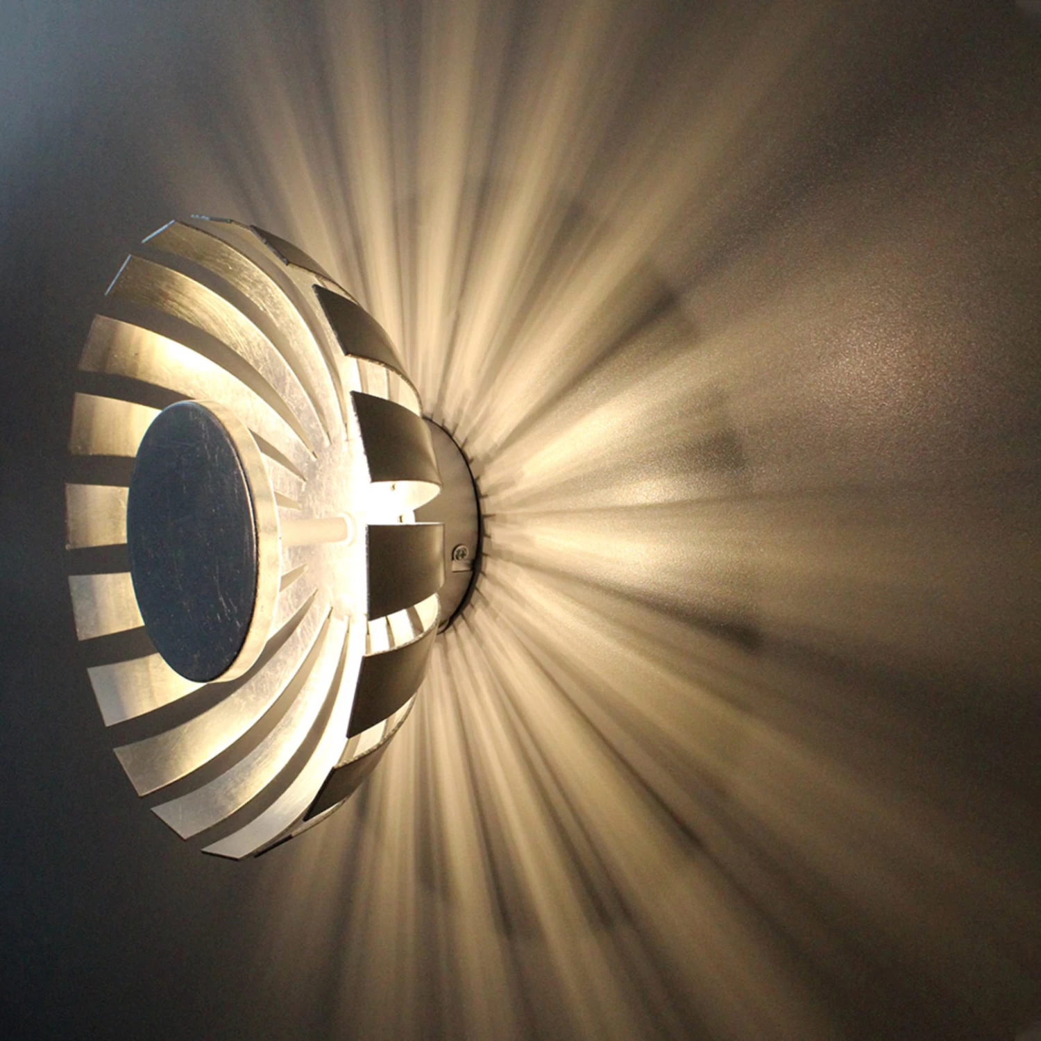 Silberfarbene LED-Wandleuchte Flare mit strahlenförmigem Schatteneffekt